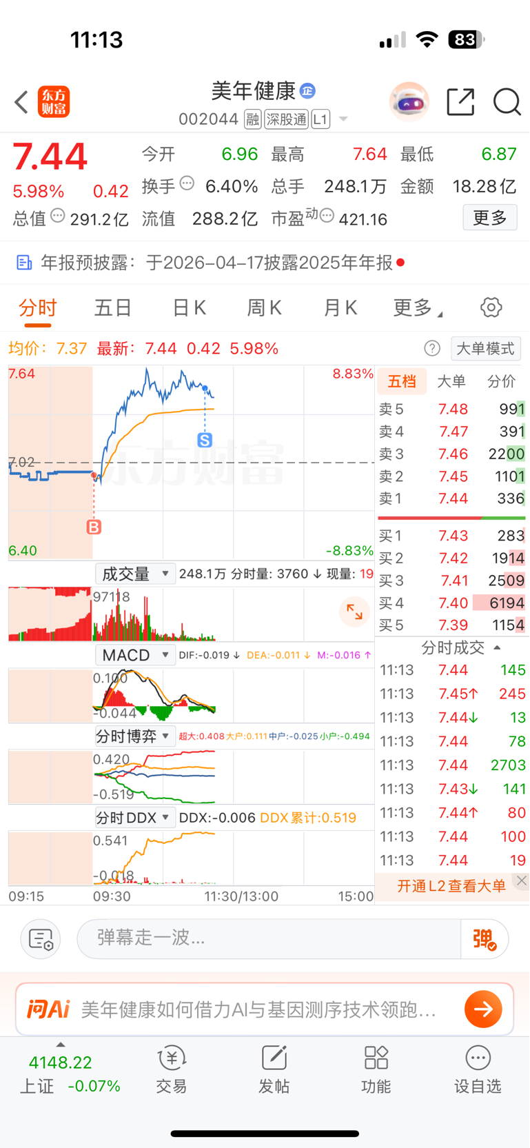 $美年健康(SZ002044)$ 兄弟们,我很格局了,有点折磨人