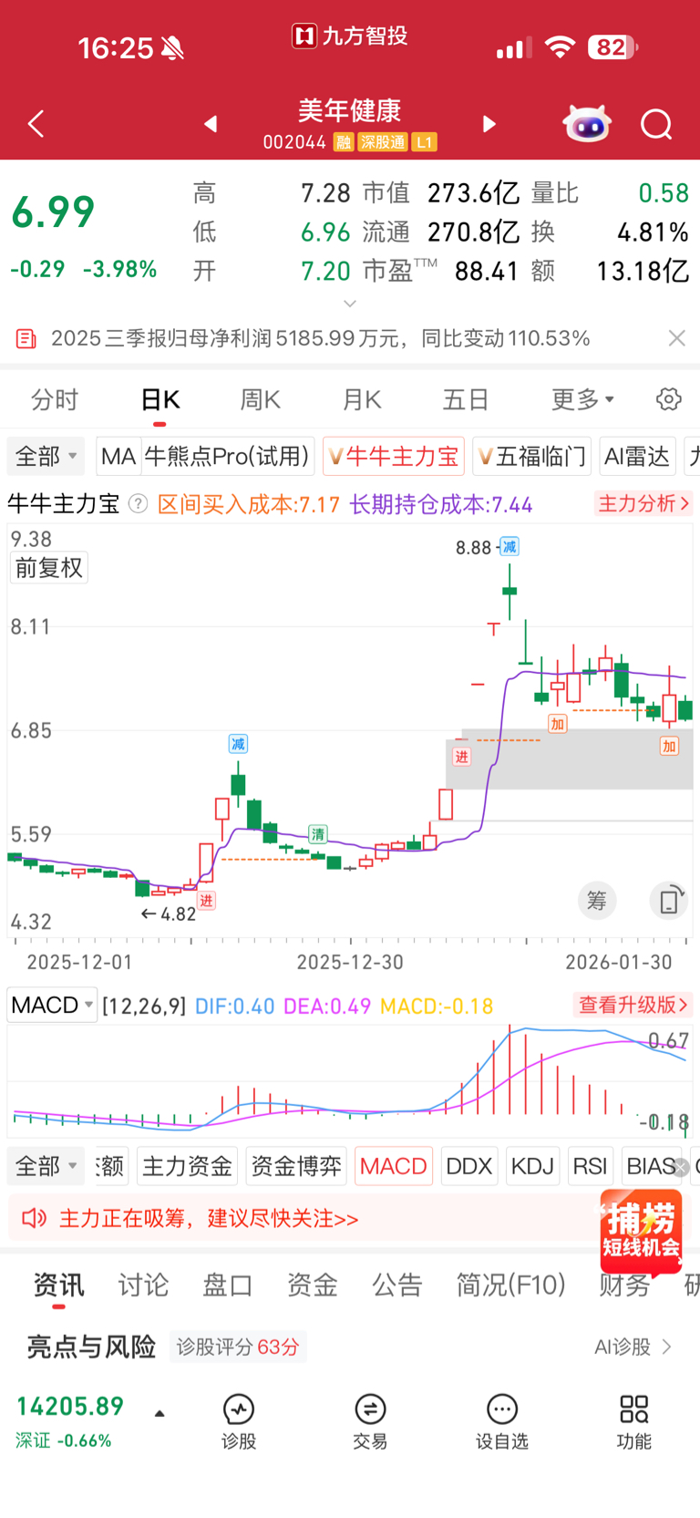$美年健康(SZ002044)$ 主力7.44的成本就这样吧,和你一起拿着吧,这两天应该跑了不少人,剩下的筹码都不动了