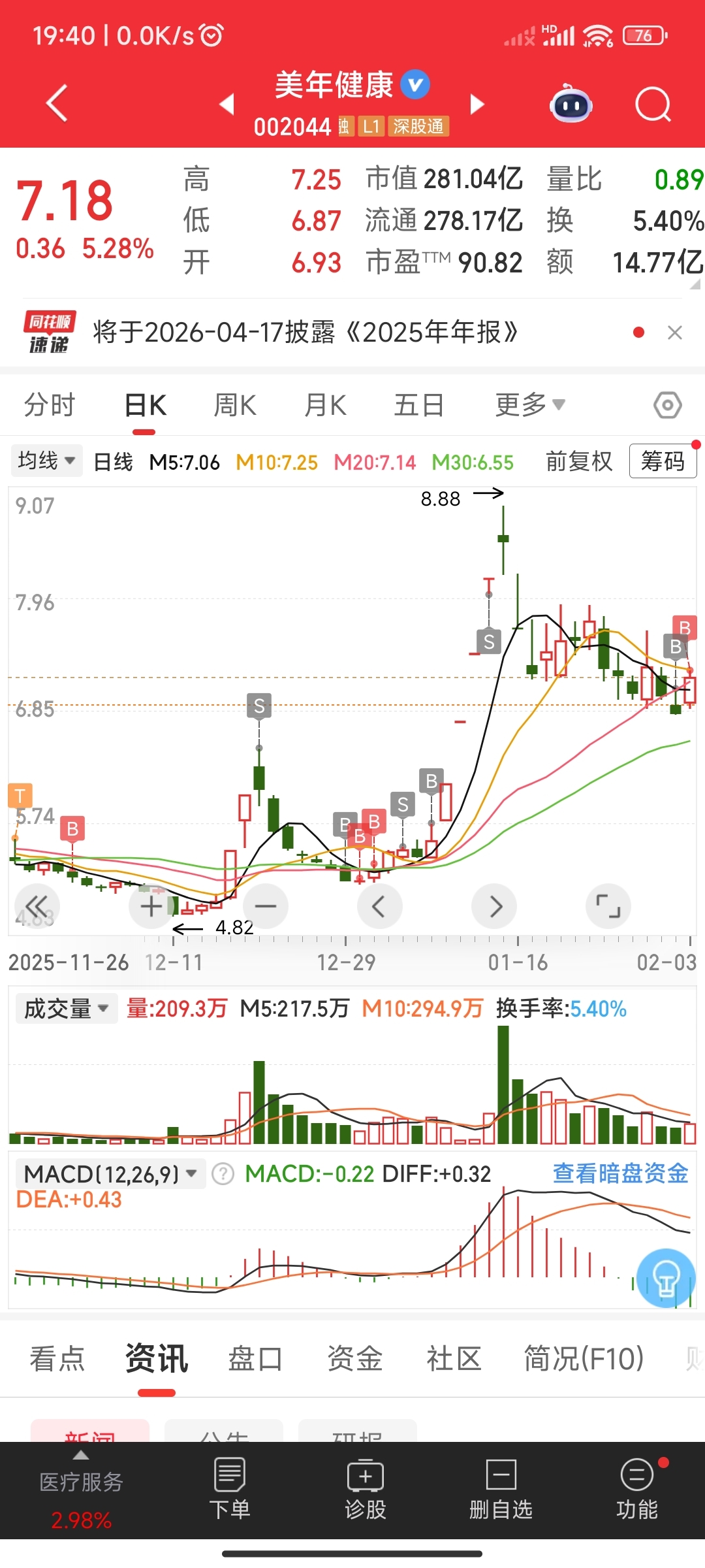 $美年健康(SZ002044)$ 今天没买多少就拉升了