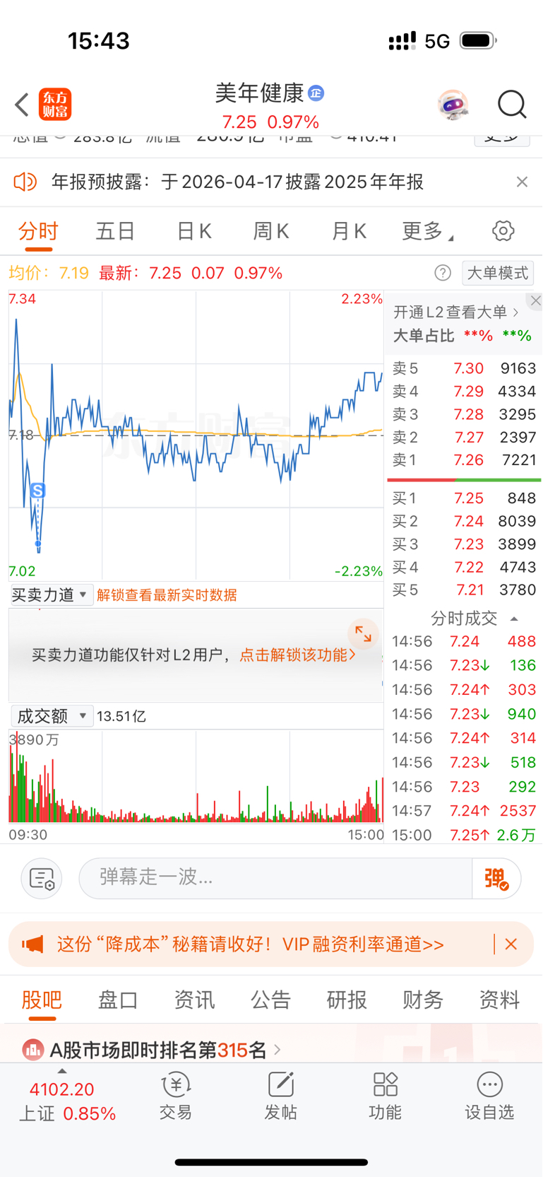 $美年健康(SZ002044)$ 太准了,盯着我呢