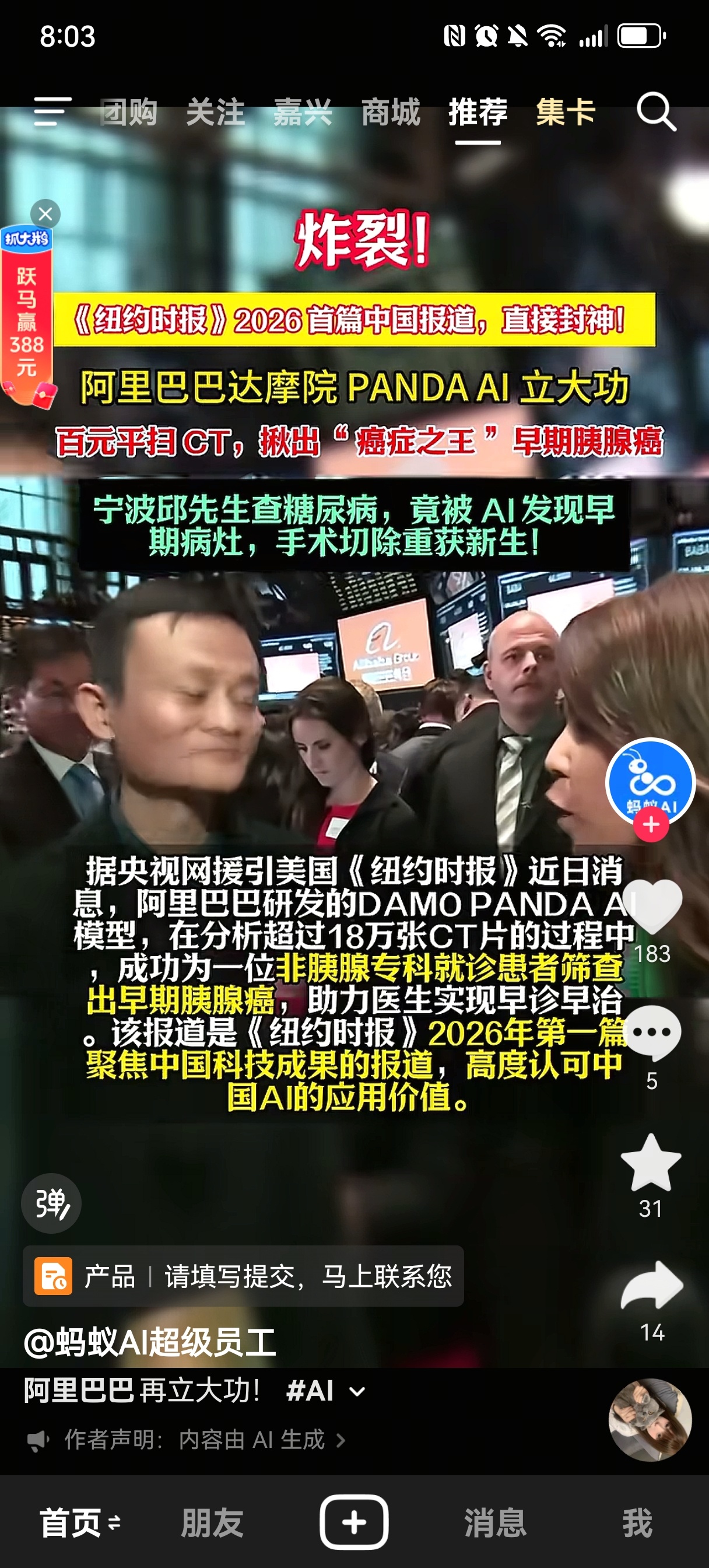 体检AI的真实落地场景,话说美年和阿里有合作没。