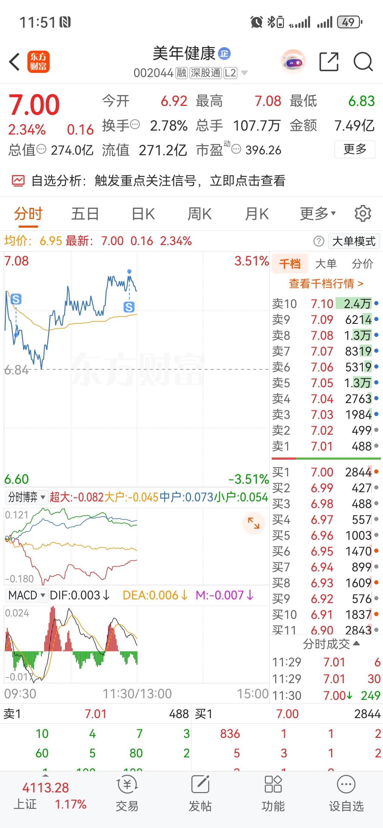 $美年健康(SZ002044)$ 试着做个T,修行不够啊,我卖了,你可以拉了