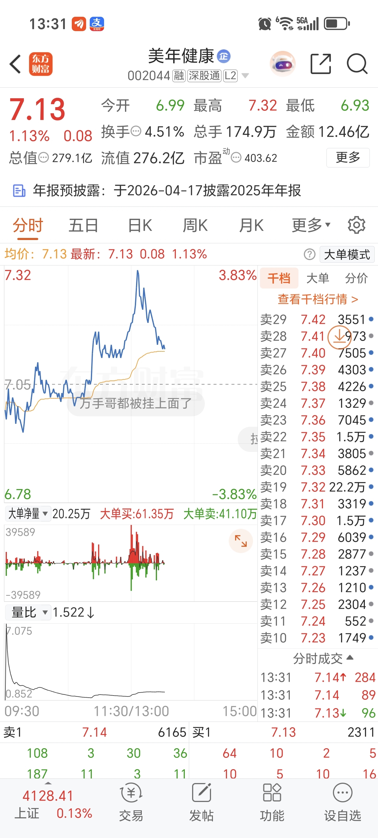 $美年健康(SZ002044)$ 这是要干啥,这是涨的多了吗?7.32