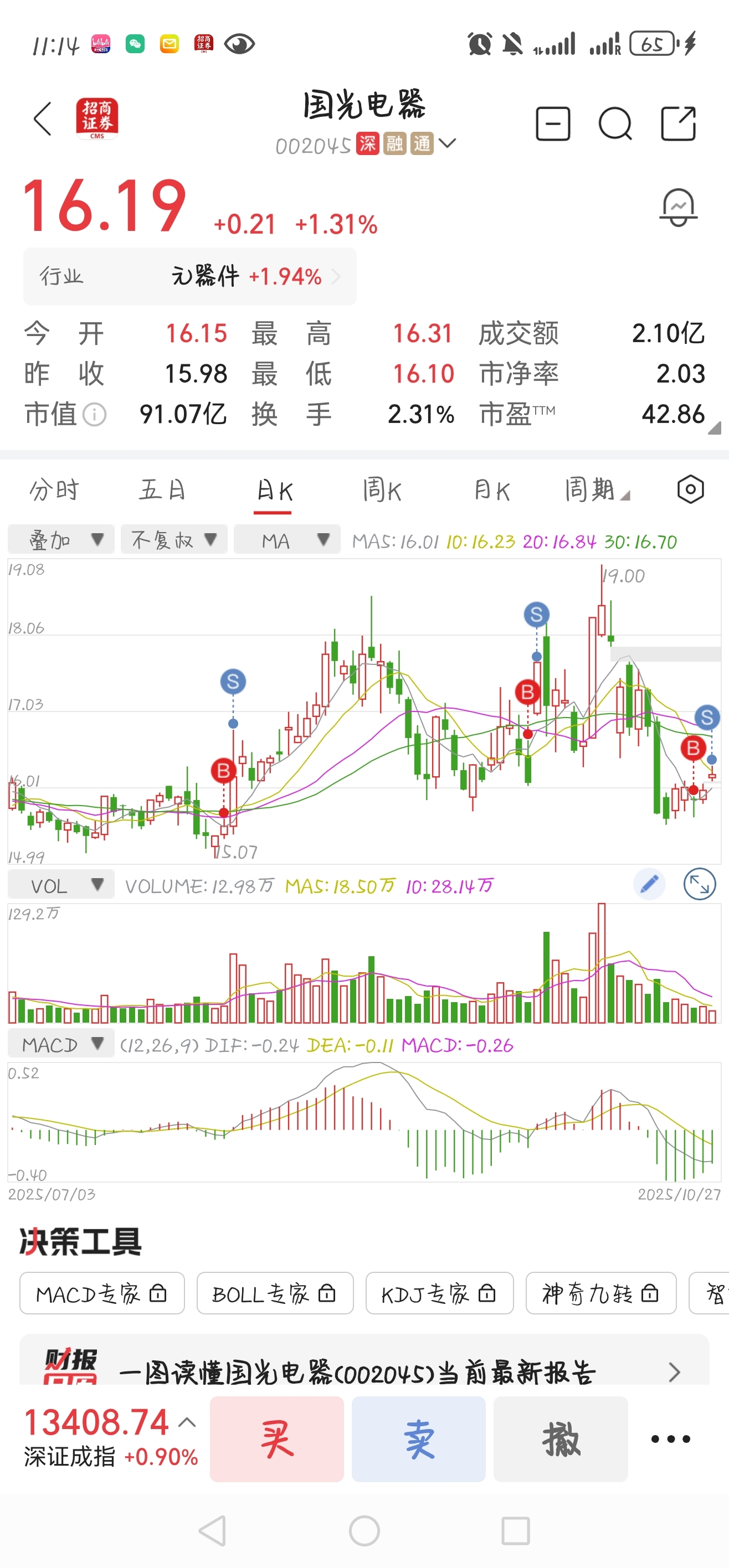 $国光电器(SZ002045)$ 赚3个点走了,明天大盘大概率要调#炒股日记#