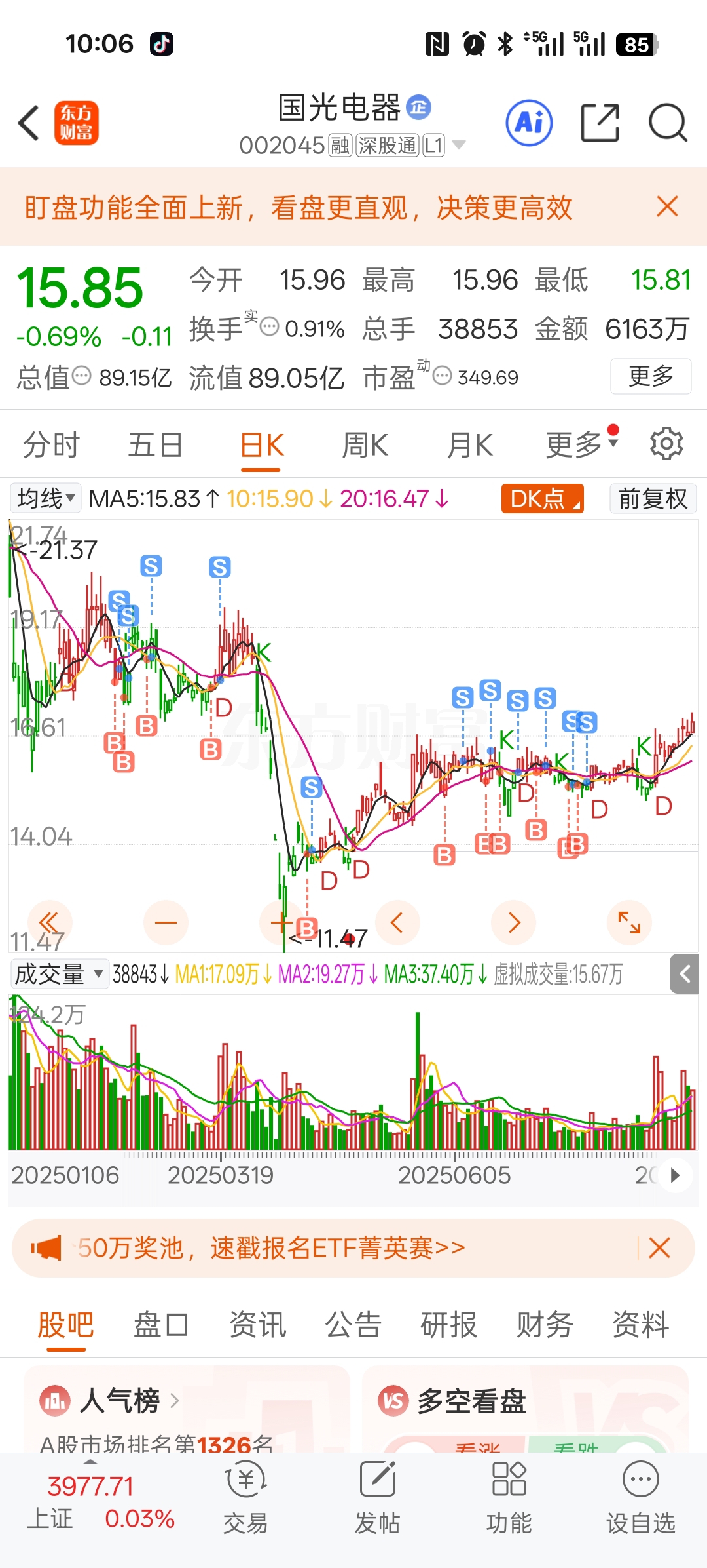 $国光电器(SZ002045)$ 再这么走我可就当跳蚤咬你了,赚一个点就收手