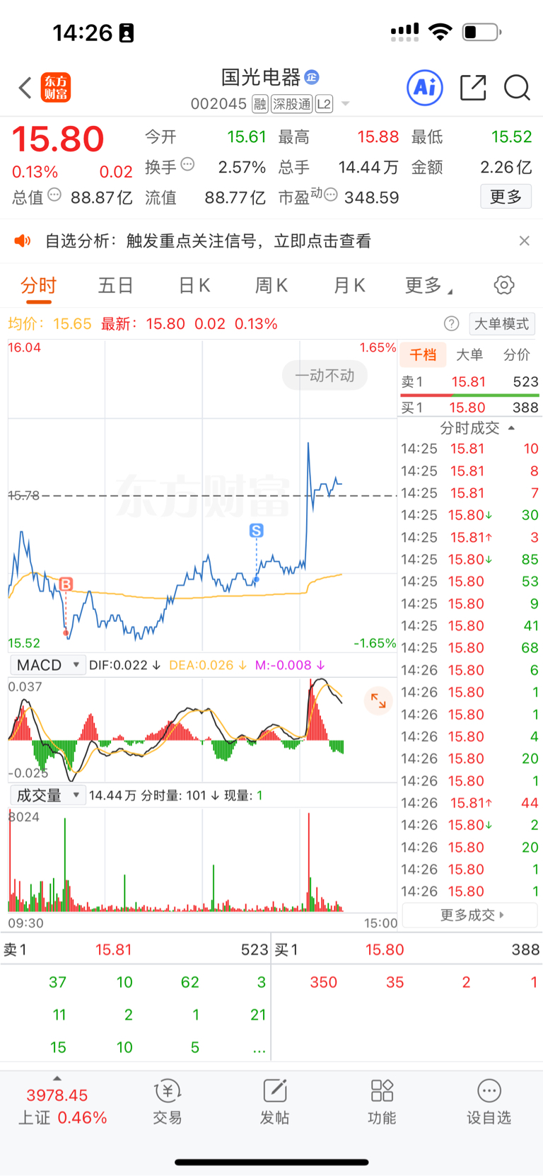 $国光电器(SZ002045)$ 感谢我吧,铁子们