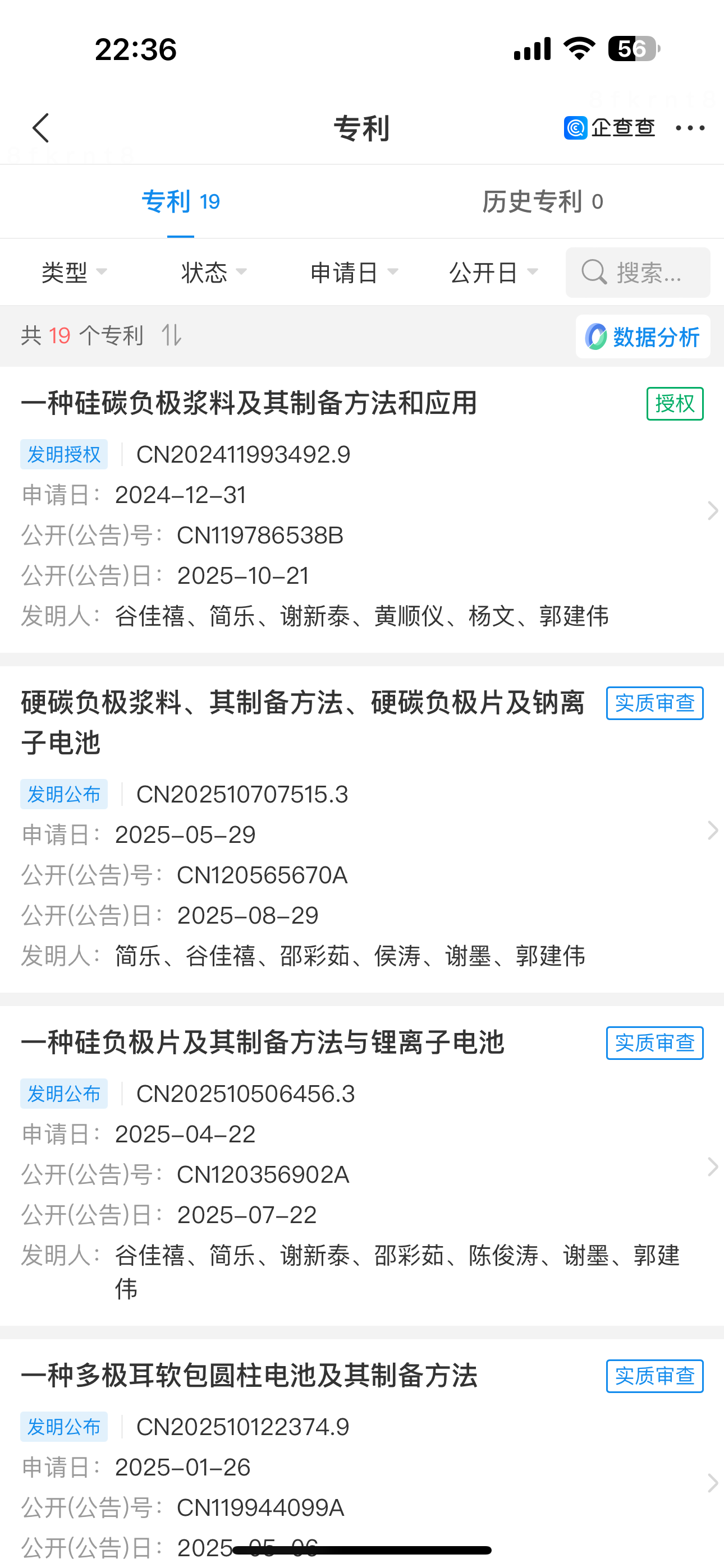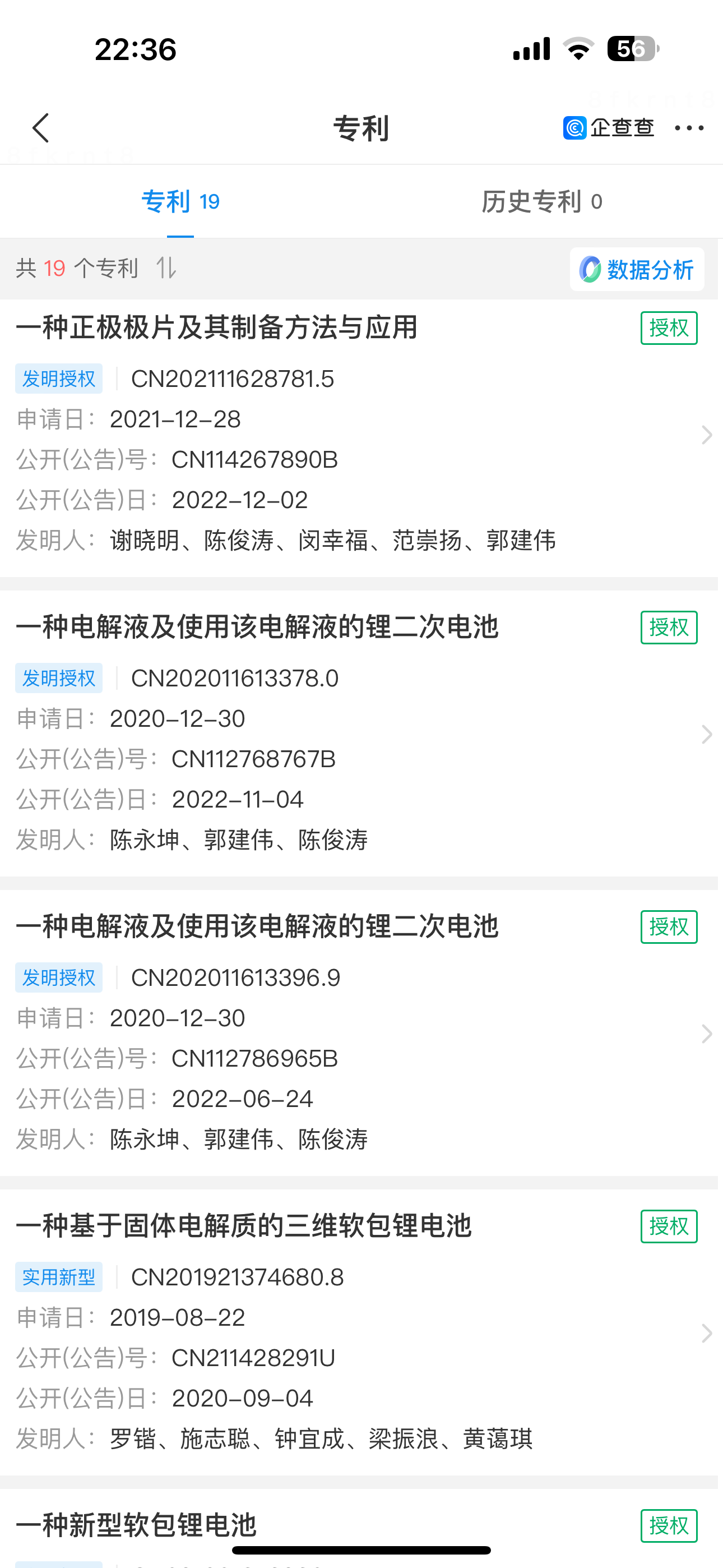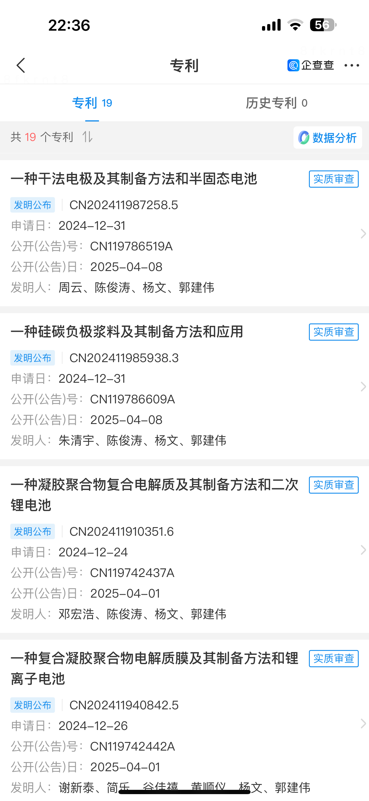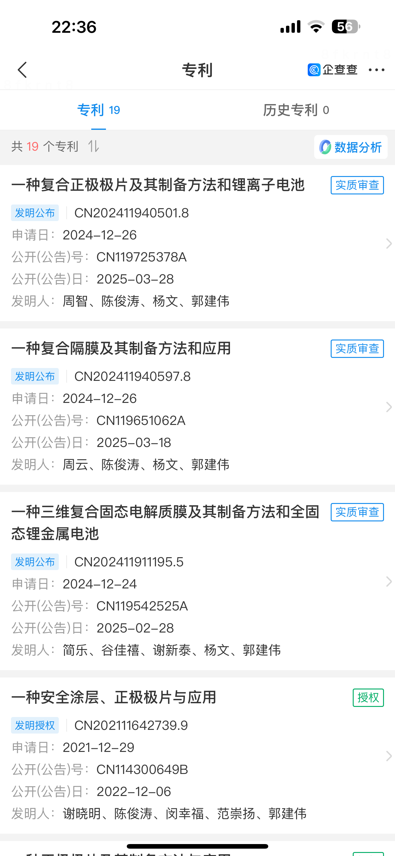 看了一下江西国光电子的工商信息,发现已经有19项专利,涵盖了多种正负极材料、半固