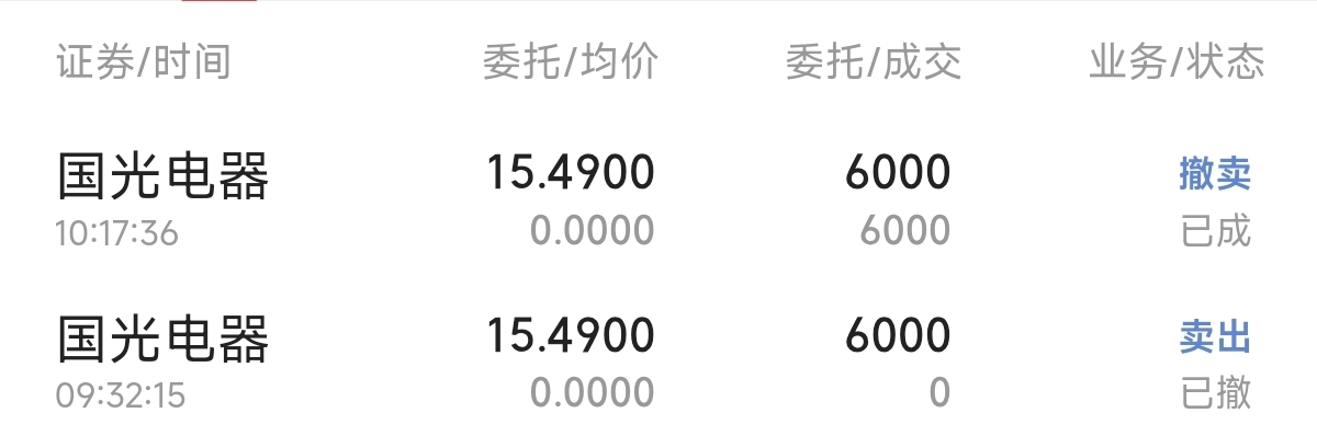 $国光电器(SZ002045)$ 有跟我一样撤单的吗