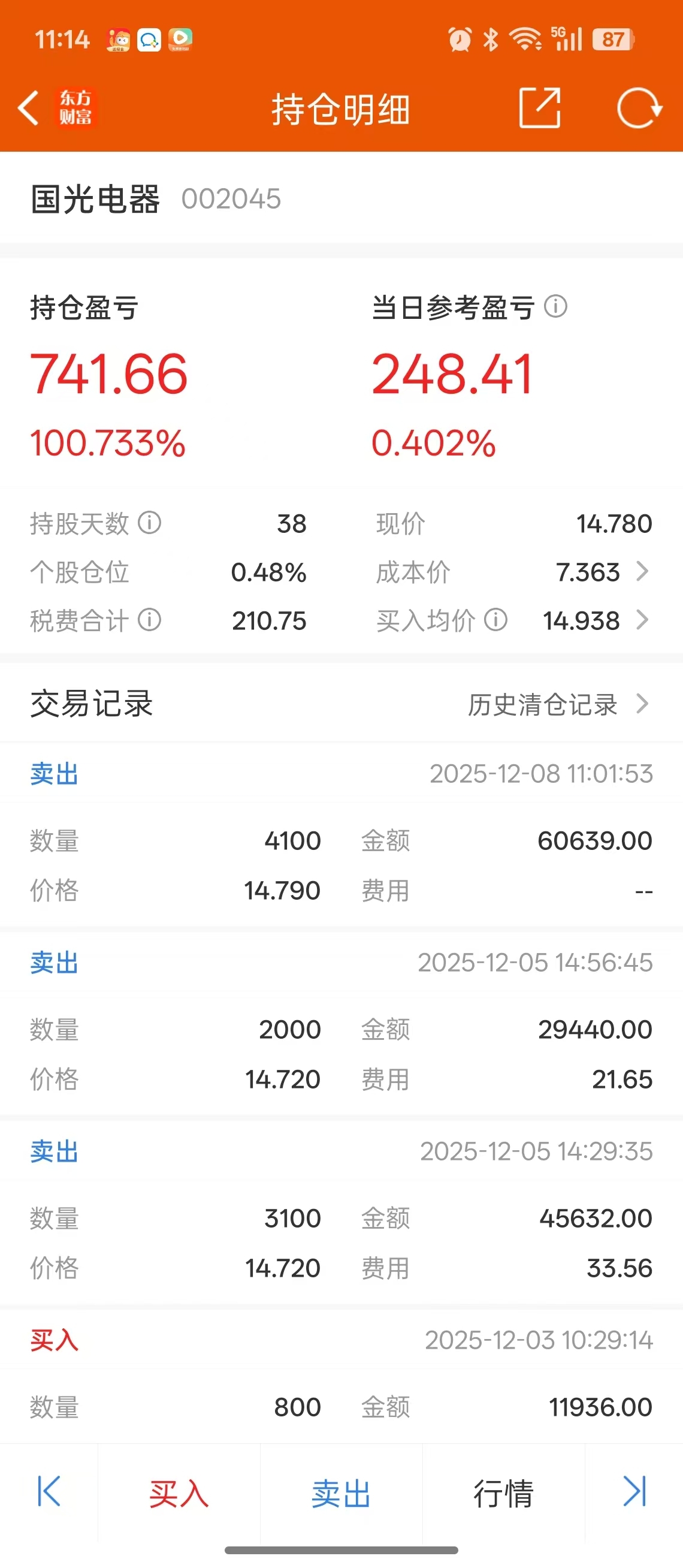 $国光电器(SZ002045)$ 赚一万块没跑,后面割了。又进来了,先买1/5仓位观望下。