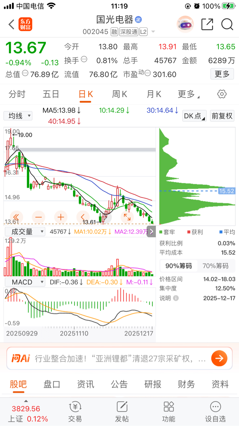 $国光电器(SZ002045)$ 照这样跌,会没朋友?#炒股日记# #复盘记录# #实盘记录# #投资干货#