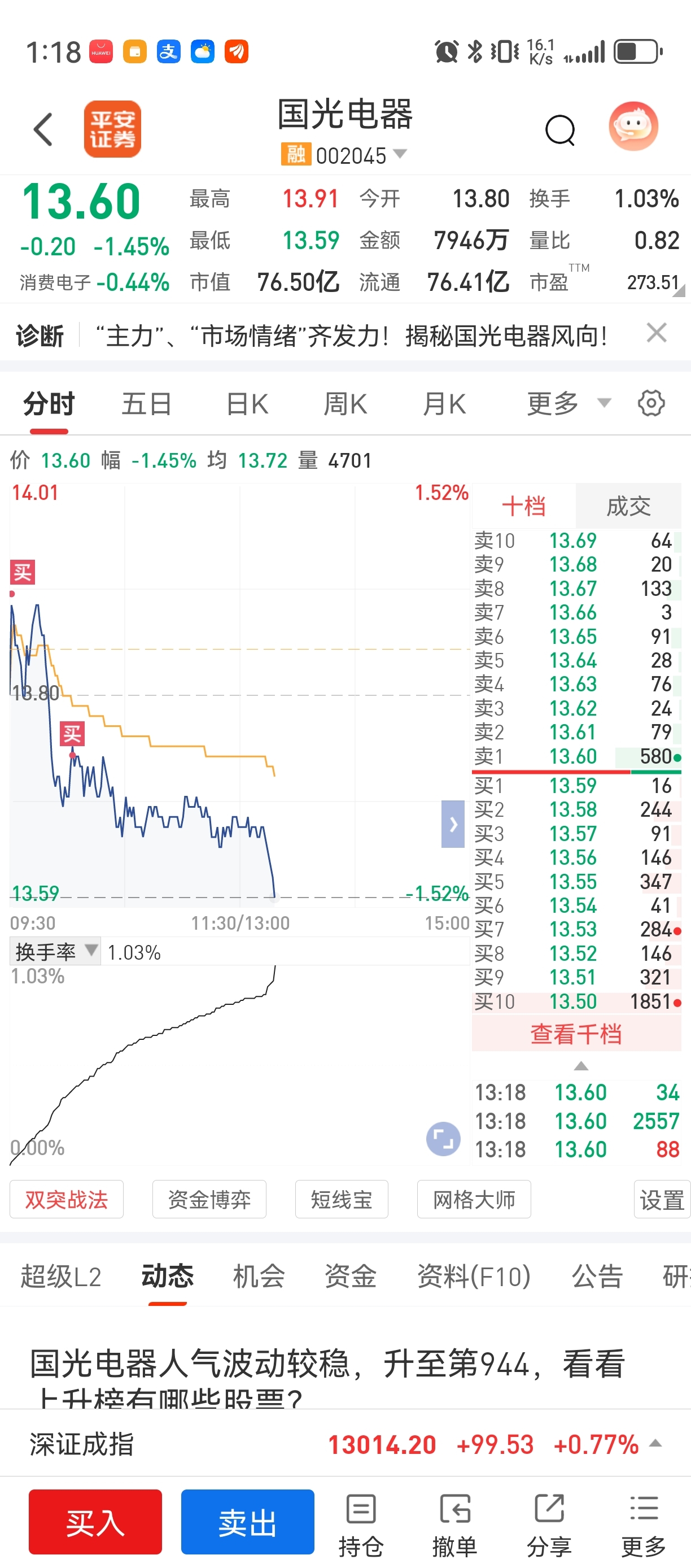 $国光电器(SZ002045)$ 给个机会明天让我平本走好嘛
