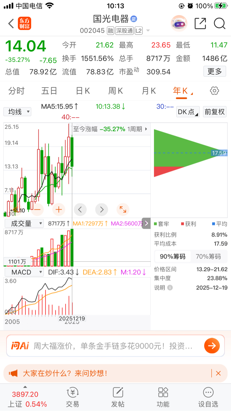 $国光电器(SZ002045)$ 年度跌幅超35%啊?#强势机会# #炒股日记# #复盘记录# #投资干货#