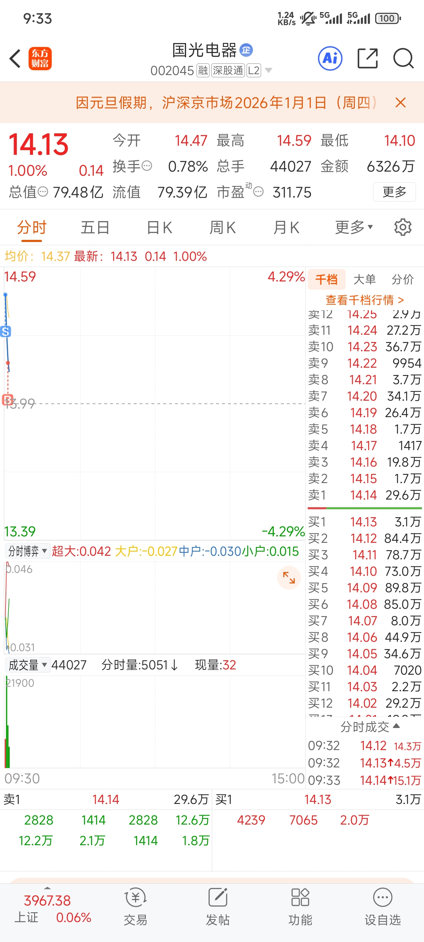 $国光电器(SZ002045)$ 做了个T,就知道会下来