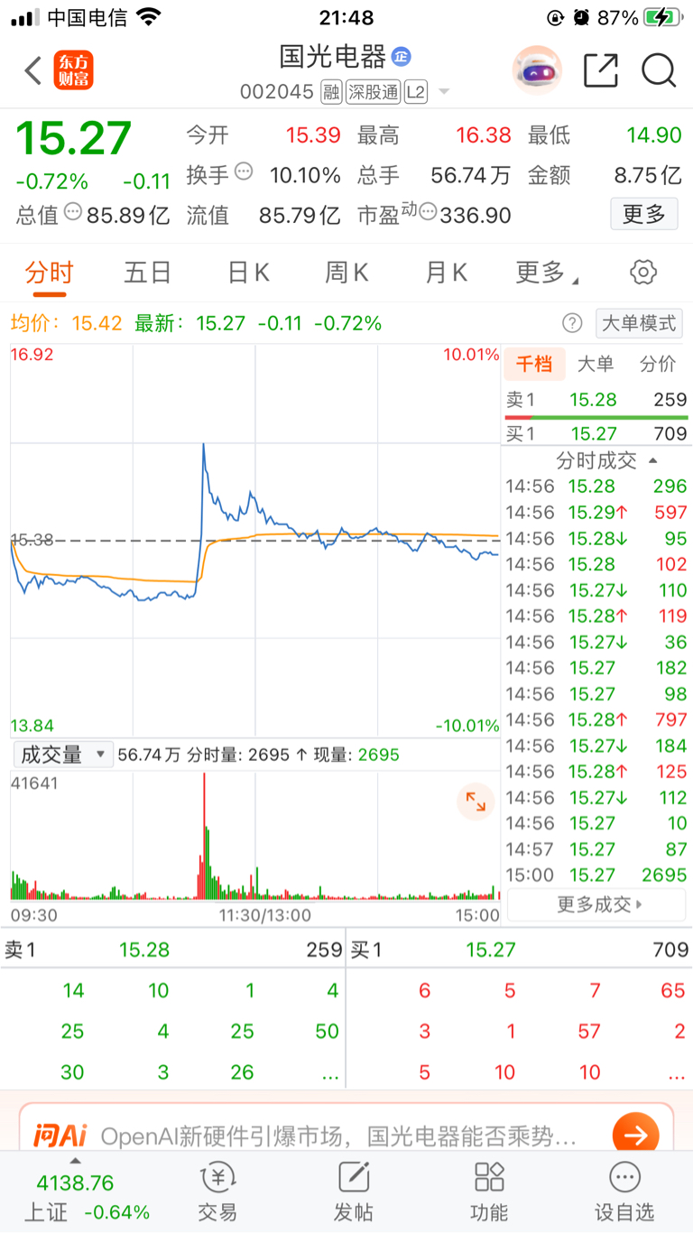 $国光电器(SZ002045)$ 看来明天有大动作了。#收盘点评# #炒股日记# #复盘记录# #强势机会#