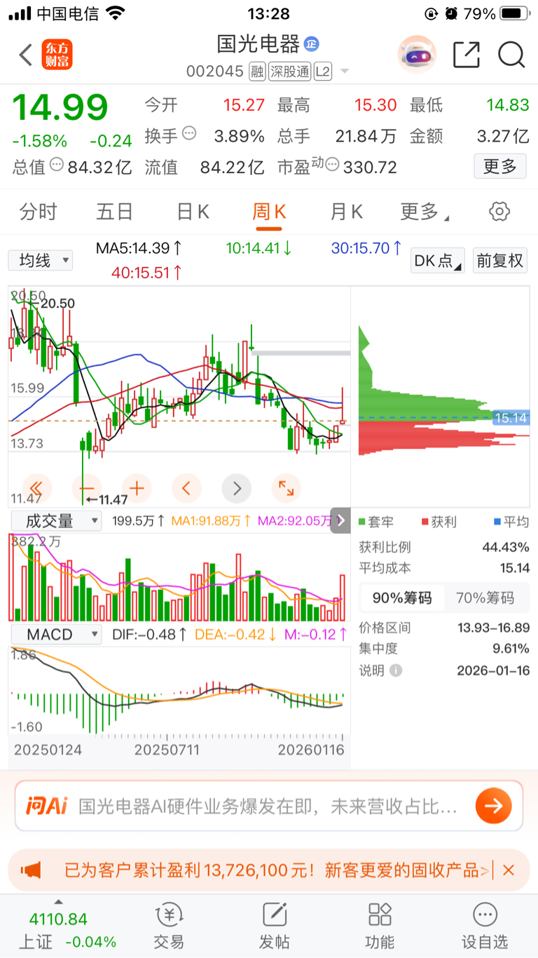 $国光电器(SZ002045)$ 难道本周收长上影?#炒股日记# #复盘记录# #强势机会# #收盘点评#