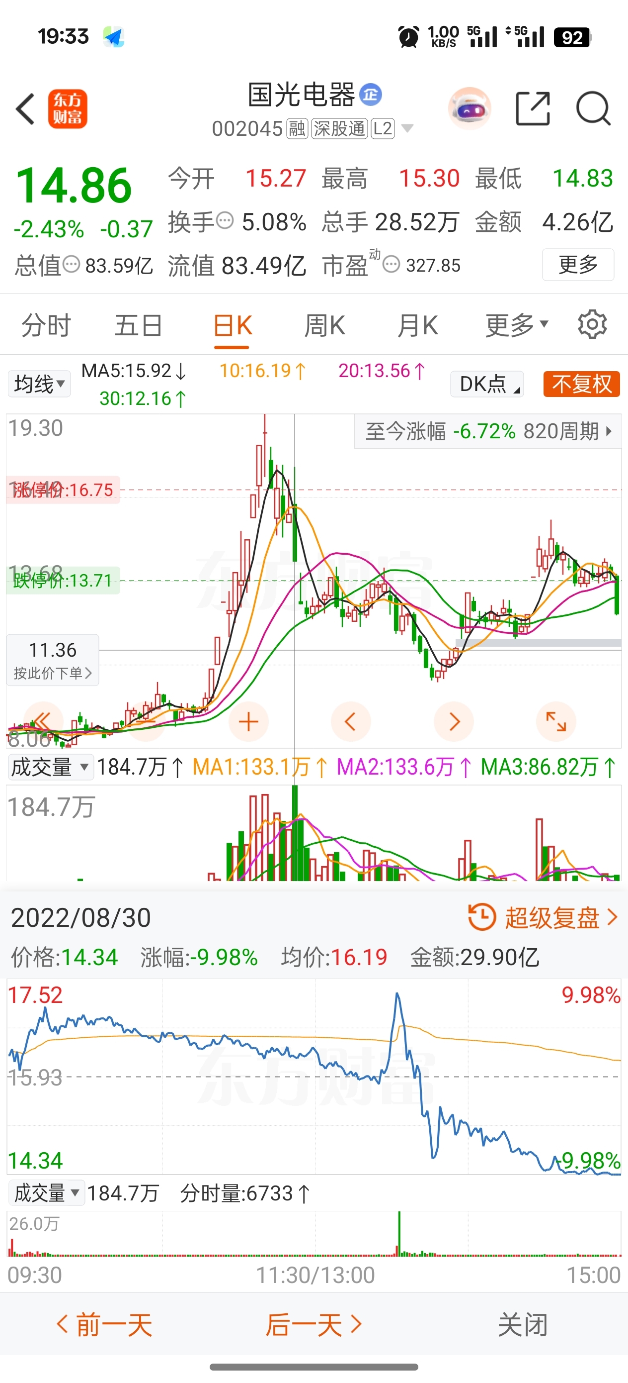 初代战神,口中的六一中路,那个时候我刚入市不久,瞎玩,晋江和平路和交易猿是那段时期的神了应该,中通之后的国光,7000万自救两个亿,经典之战。那个时候没人说什么席位溢价,而不是当b子还要立牌坊,说一套还要做一套,盘中一边9898,一边出货6个亿,明明上个月还一直抵制的,这个月就立场不坚定了,也没想到几个亿就能左右200多亿成交的股,有一丝不甘,但是挨打要站稳。