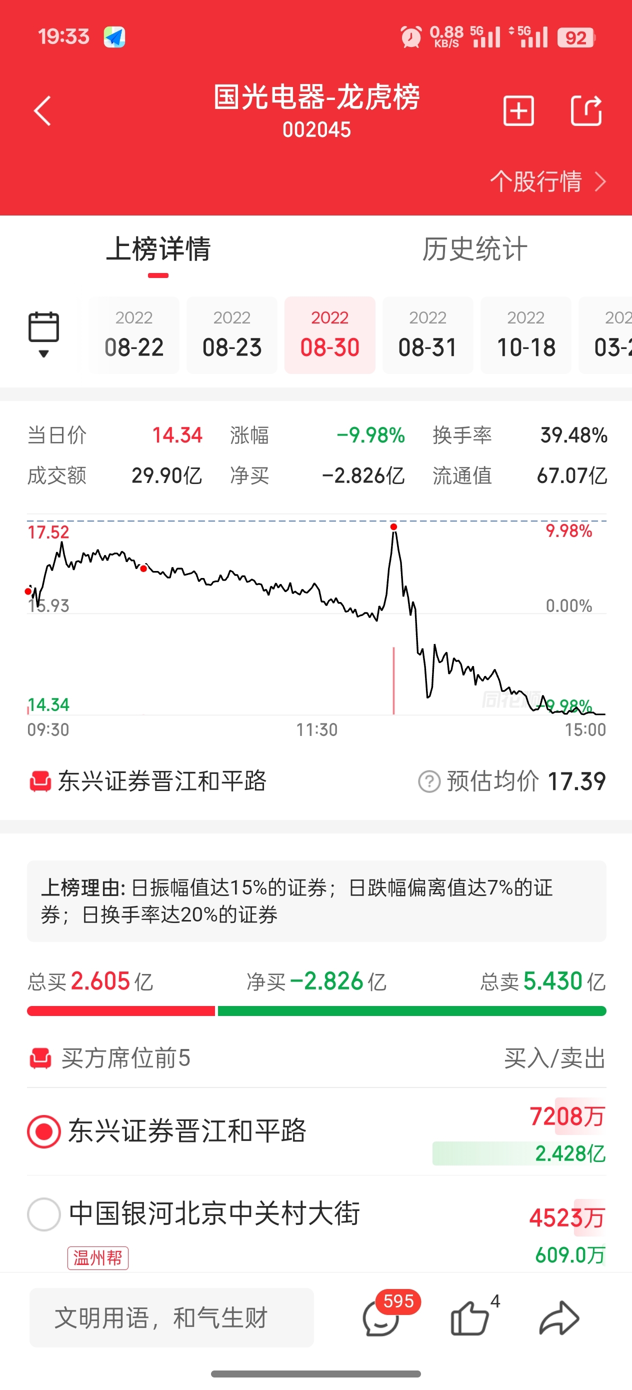 温馨提示: 1.根据《证券法》规定,禁止编造、传播虚假信息或者误导性信息,扰乱证券市场;2.用户在本社区发表的所有资料、言论等仅代表个人观点,与本网站立场无关,不对您构成任何投资建议。用户应基于自己的独立判断,自行决定证券投资并承担相应风险。《东方财富社区管理规定》