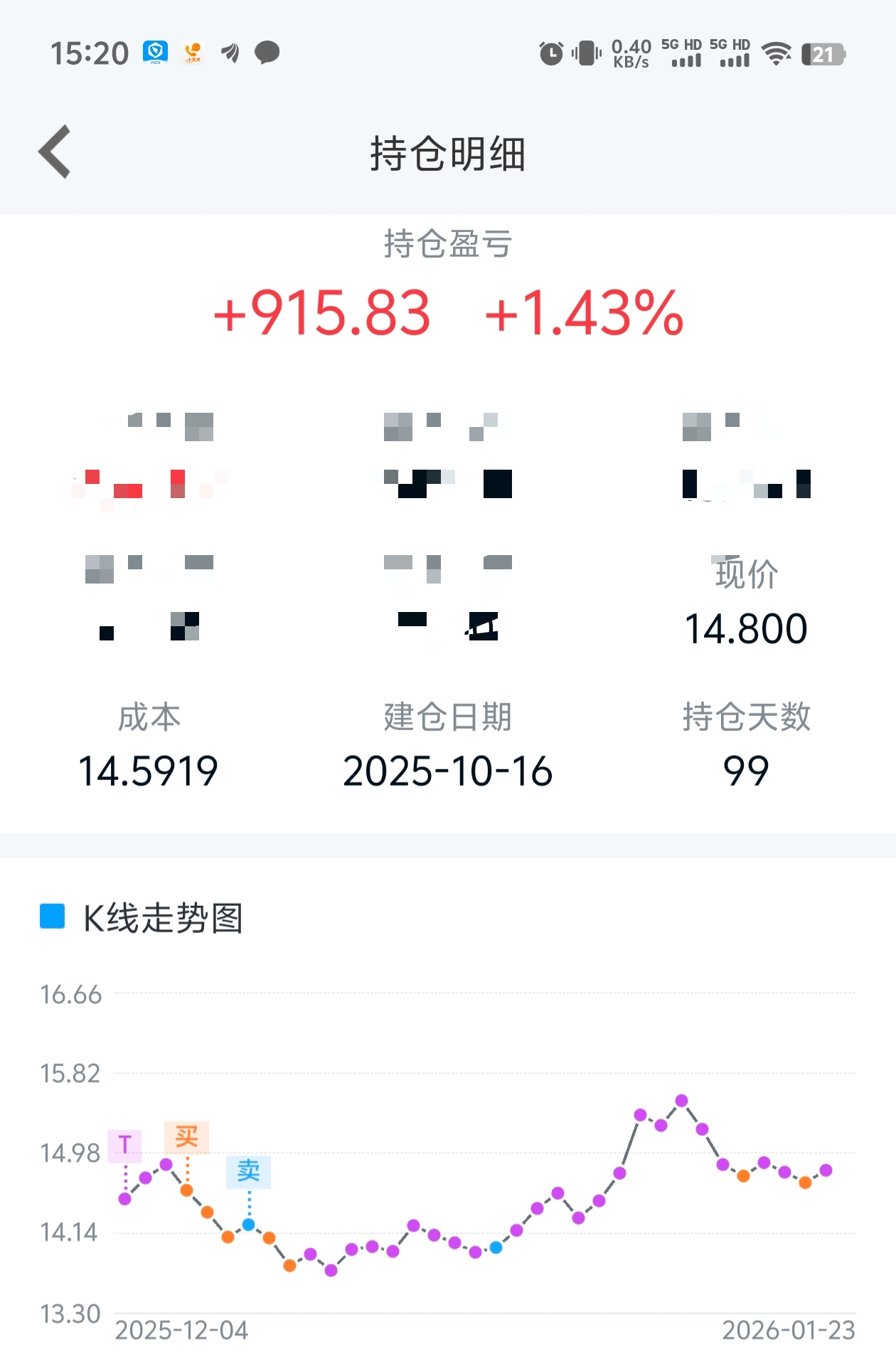 还剩一点,99天,亏2万,到正900。我走了,太难受了。