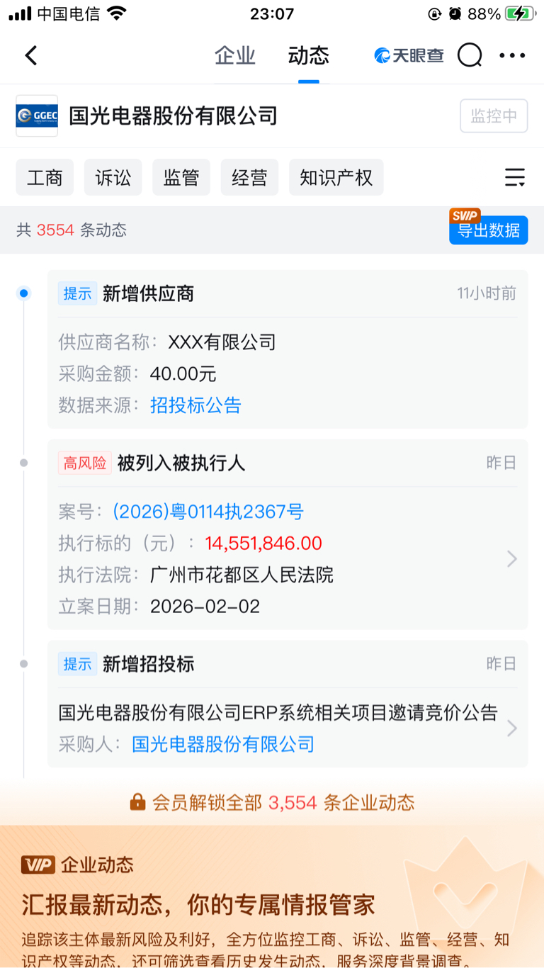 #收盘点评# 近日,国光电器被广州市花都区人民法院列入被执行人,执行标的高达1500万元。#炒股日记# #复盘记录# #强势机会# #投资干货#