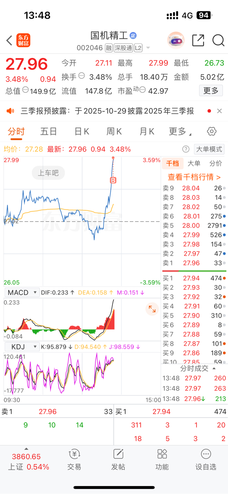 $国机精工(SZ002046)$ 27.99买入的