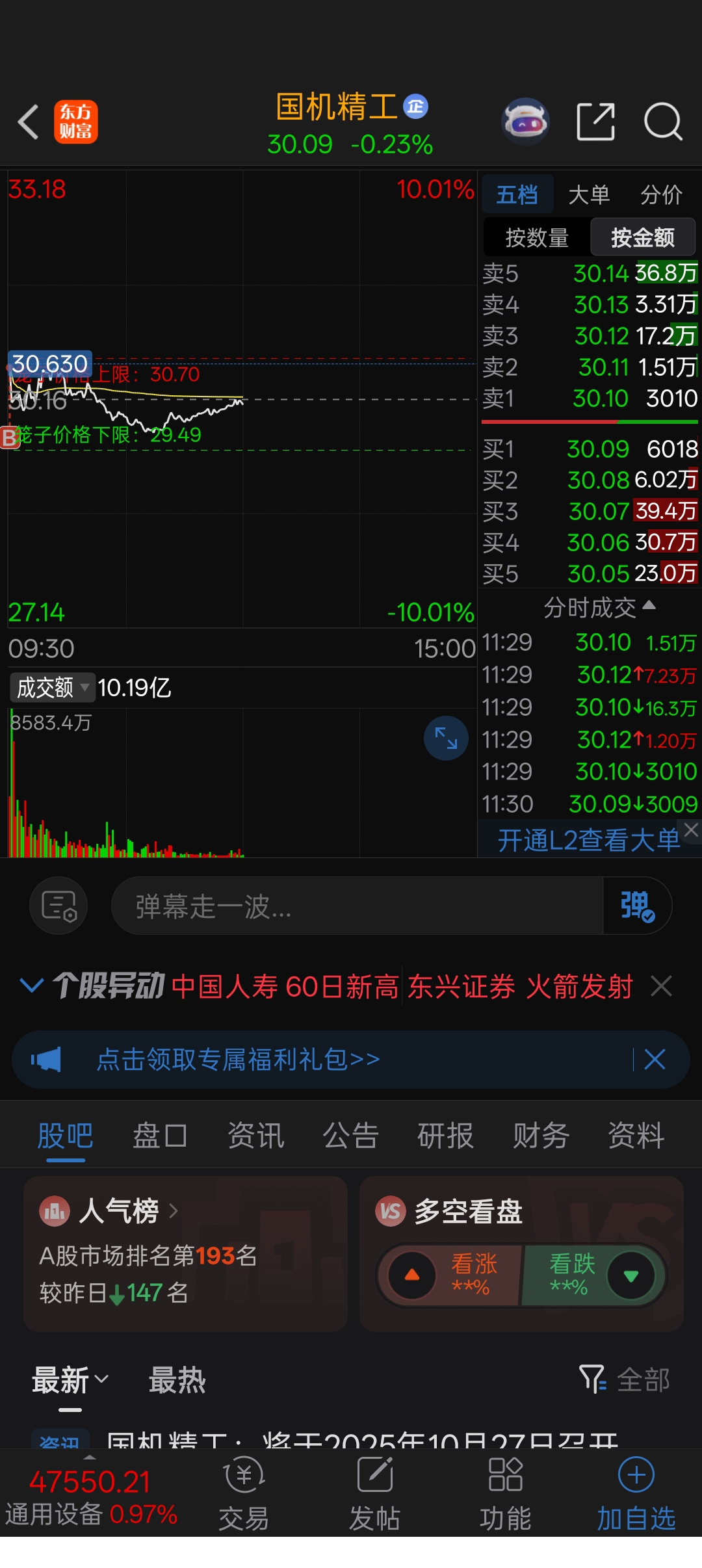 $国机精工(SZ002046)$ 开盘就买了,主要是足够安全,月线程九十度往上捅,我不信就发射这么一下,稍微射下就是五个点大肉