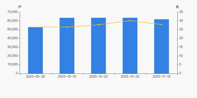 2025年9月30日至今,公司股东户数显著增长,区间涨幅为16.98%。2025年9月30日至2025年11月10日区间股价上涨5.51%。