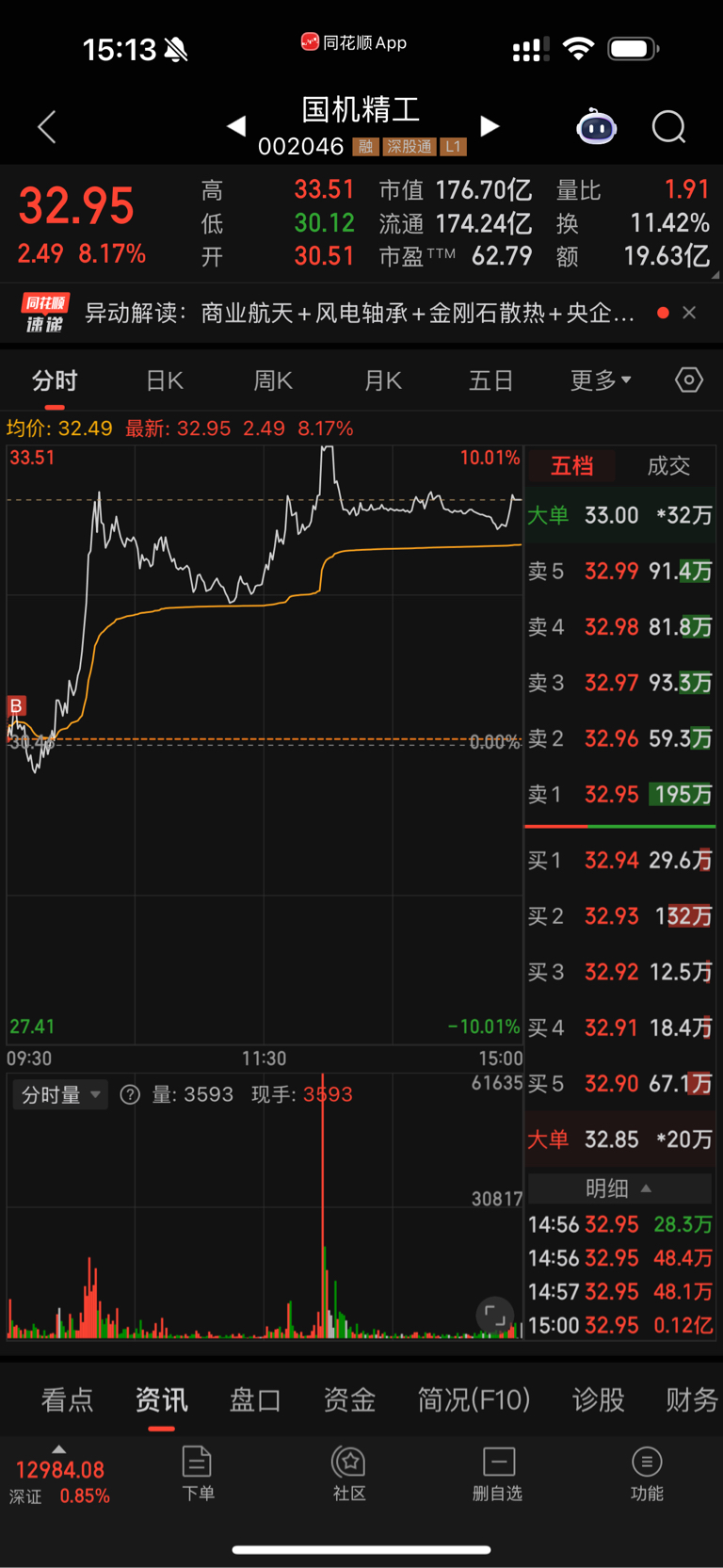 $国机精工(SZ002046)$ 问一下,这票抄什么的