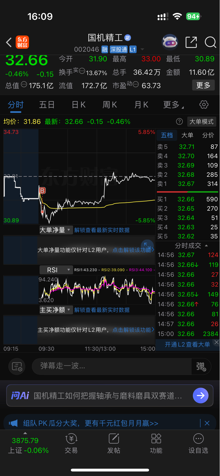 $国机精工(SZ002046)$ 小赚4个点,可以了。