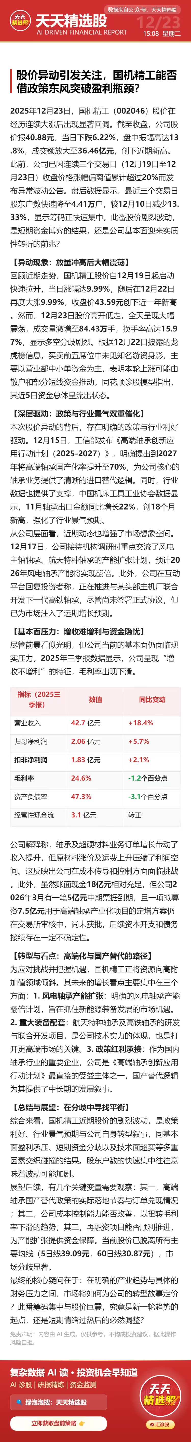 股价股价异动引发关注,国机精工能否借政策东风突破盈利瓶颈?