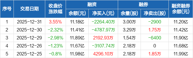 国机精工:融资净偿还2264.4万元,融资余额11.18亿元(12-31)