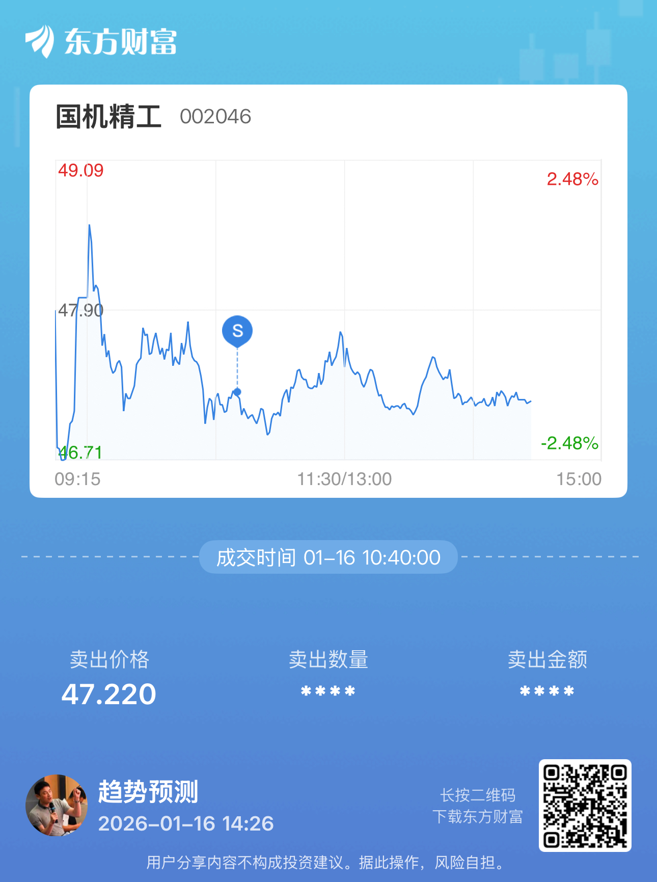 $国机精工(SZ002046)$ 各位伙伴,此股下周还会随着龙头的下跌继续走A,目前就是缺乏一次大的大跌,可以博弈第二天的反弹。其它时间只看不买就是最佳状态!