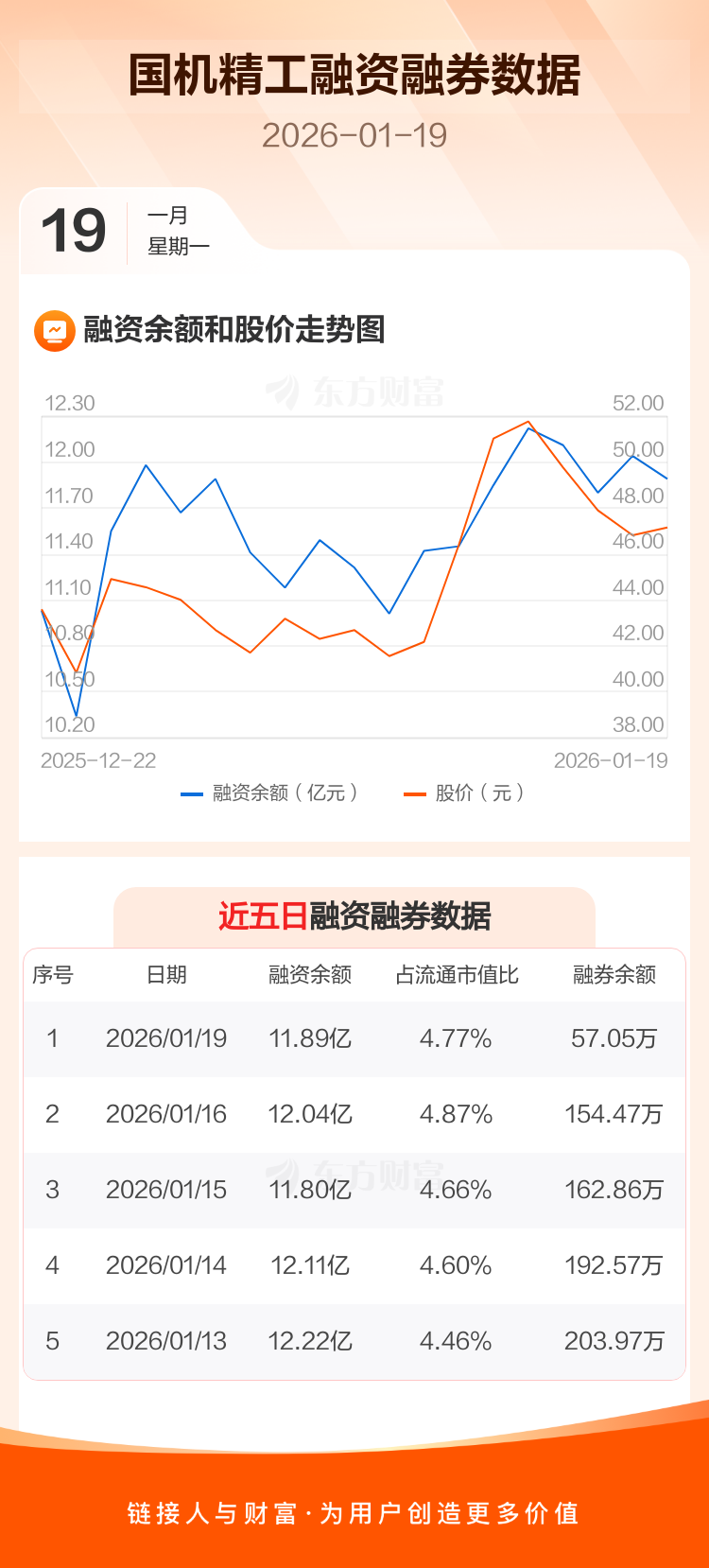 交易所最新数据显示,国机精工于2026年1月19日获融资买入8846.69万元,融资偿还1.03亿元,当日融资净偿还1502.9万元。目前,该股融资余额11.89亿,占流通市值比例为4.77%。