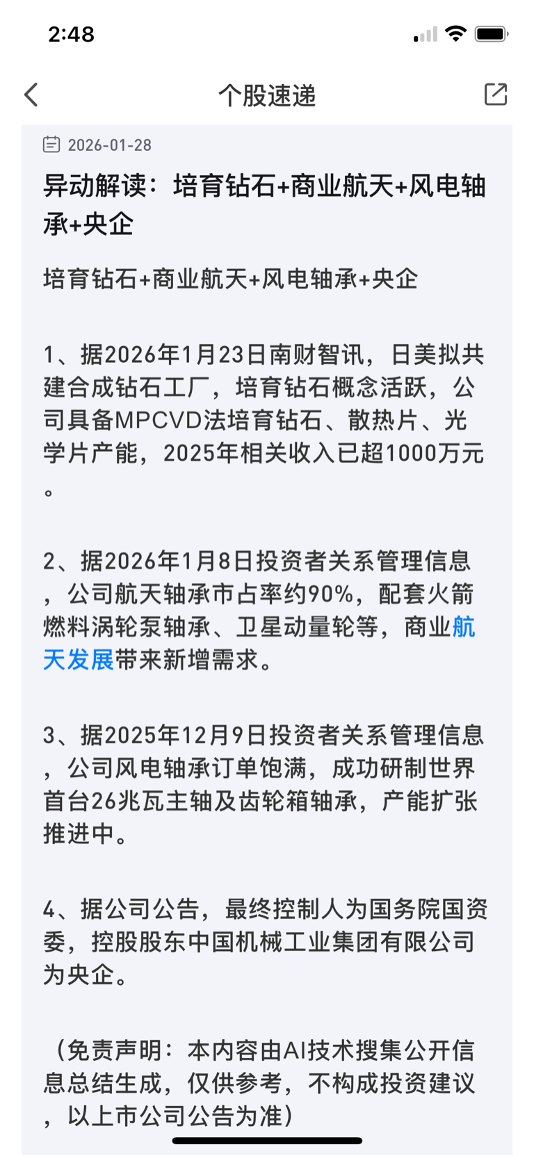 航天轴承90%的市占率,每次发射都要用的必须品,风电轴承订单饱满,业绩有托底,太