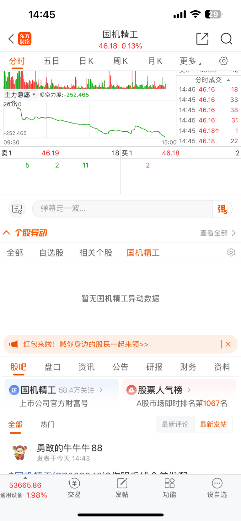 $国机精工(SZ002046)$ 一天了,你跟个死人一样。