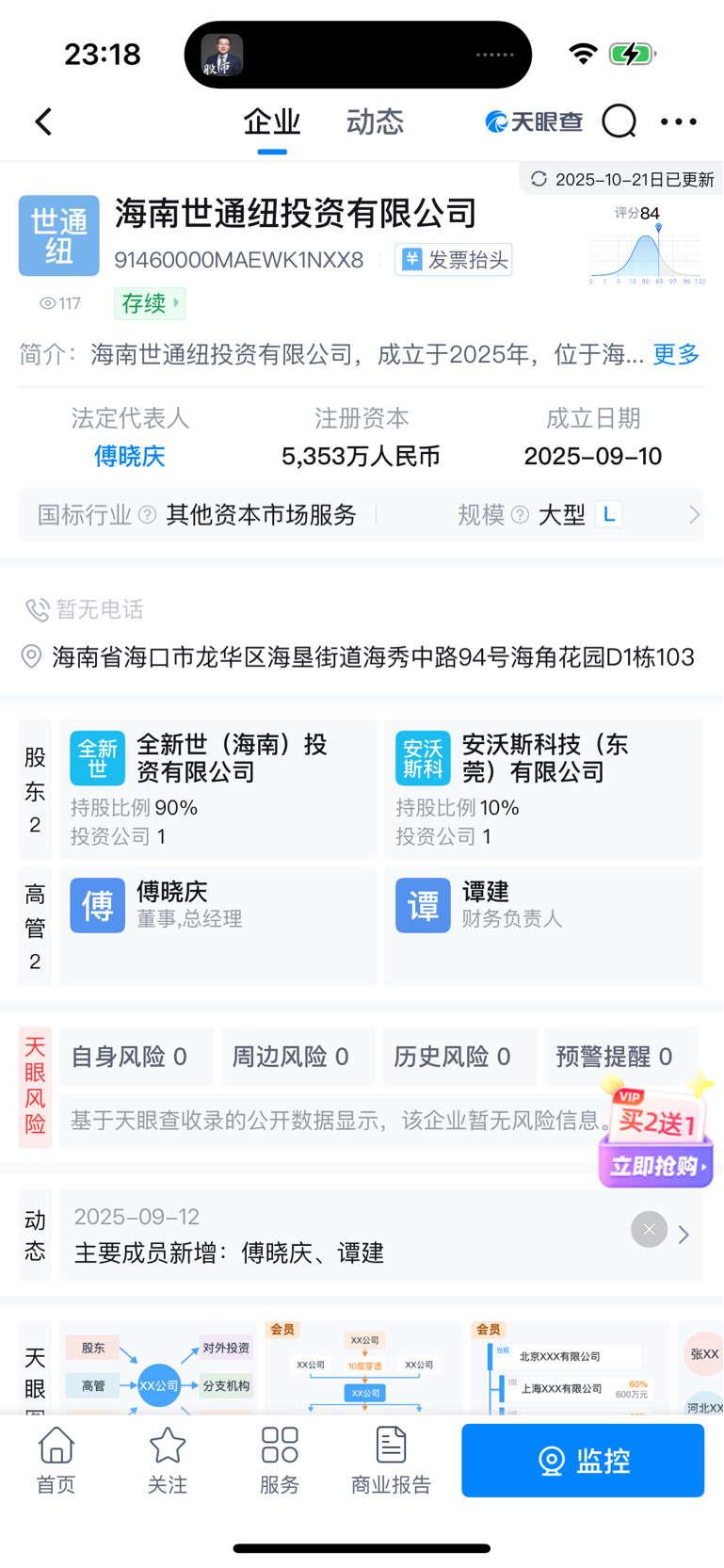 基本信息海南世通纽投资有限公司,成立于2025年9月10日,位于海南省海口市,是
