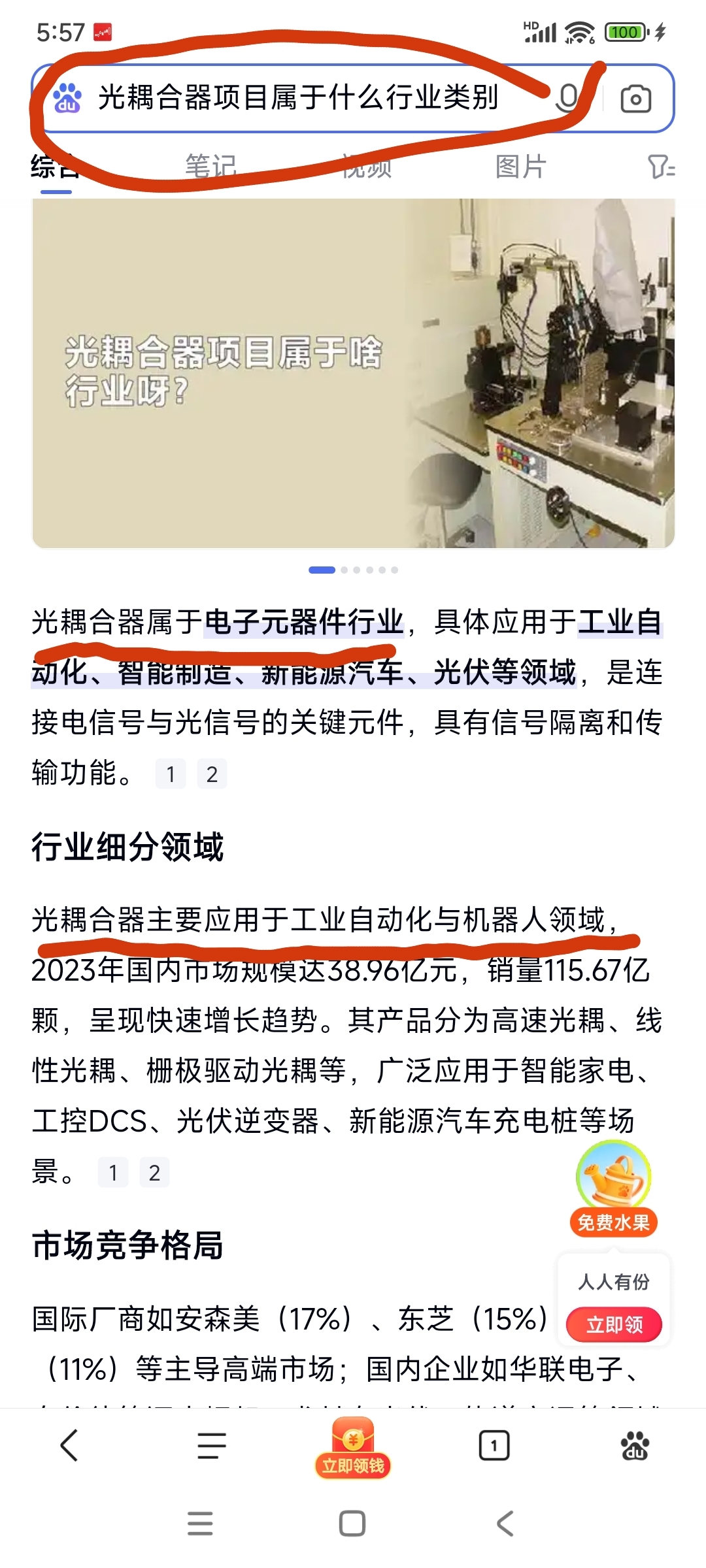 光耦合器属于电子元器件行业,主要应用于工业自动化与机器人领域,好像有点想象空间。