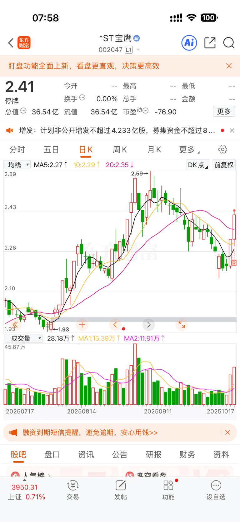 $*ST宝鹰(SZ002047)$ 终于逮到一次#炒股日记#
