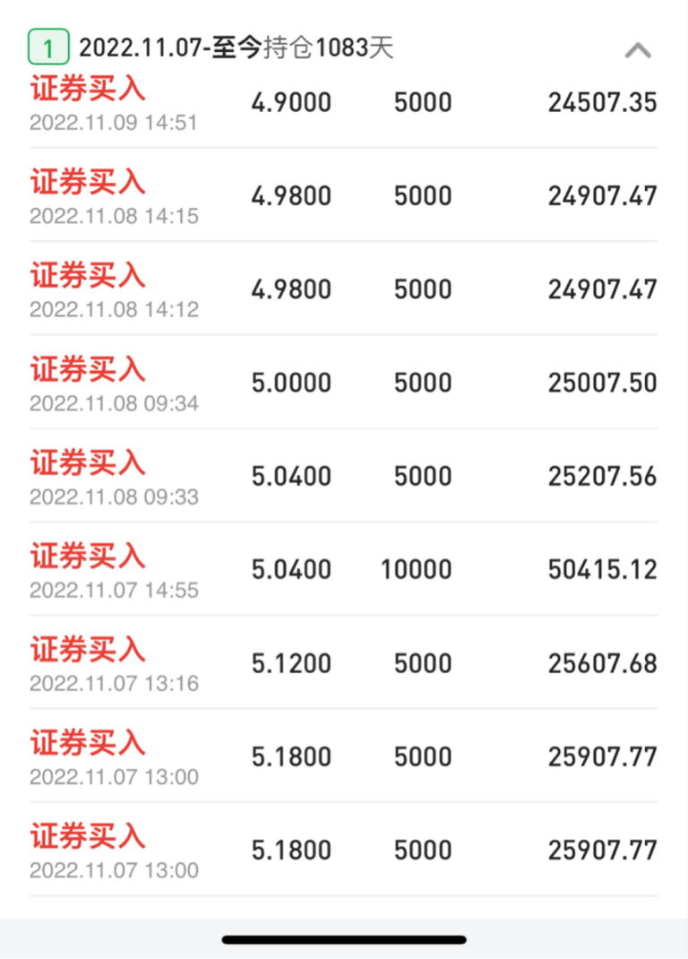 扛过1.38的低谷、见证过3.75的高峰、3年前5.18建仓、一直做成本做到了2