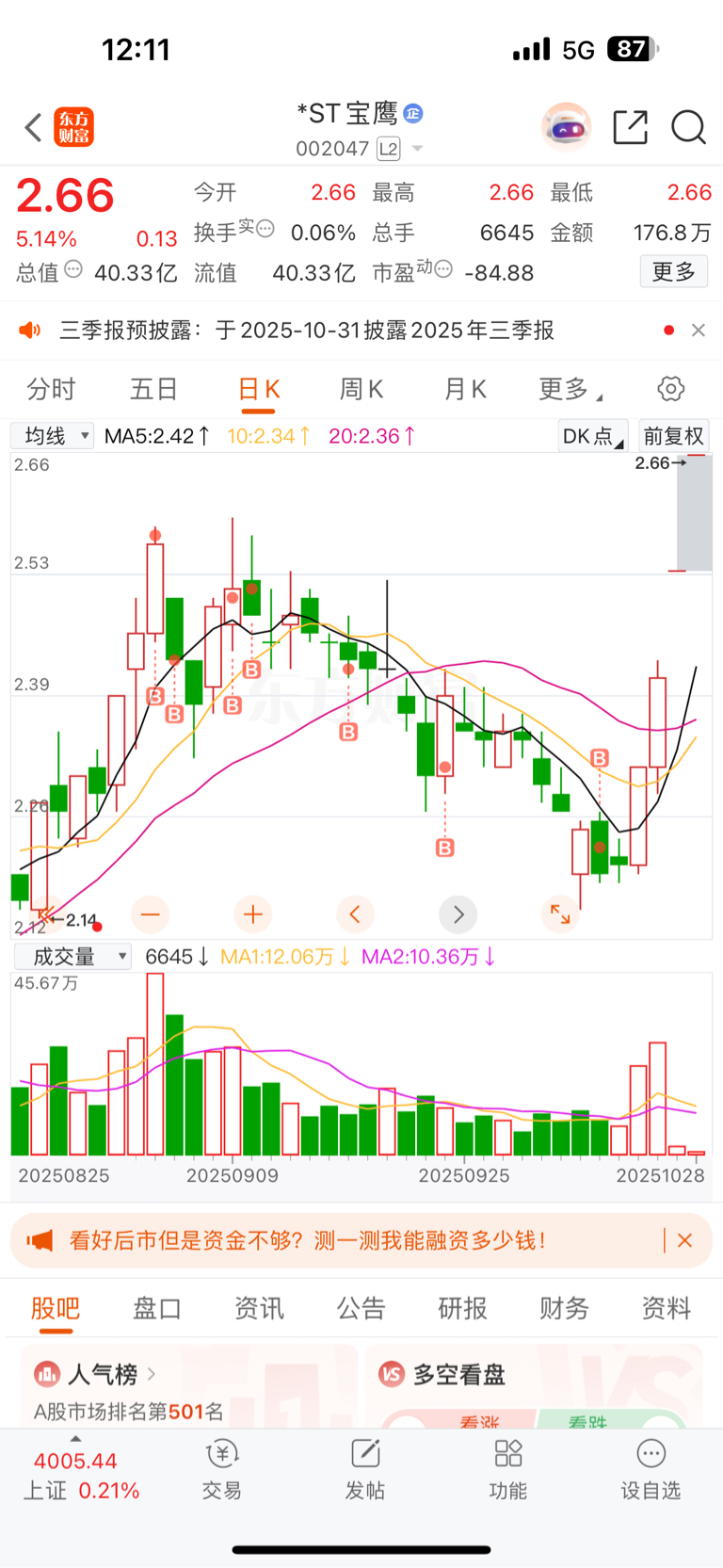 $*ST宝鹰(SZ002047)$ 只要主力不抛弃,我绝对不会卖,