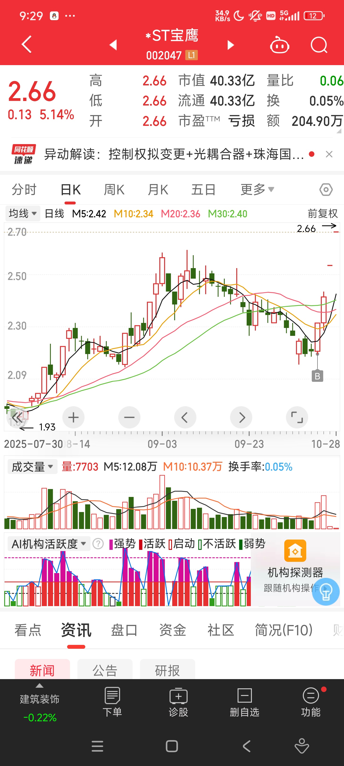$*ST宝鹰(SZ002047)$ 翻倍是没问题的