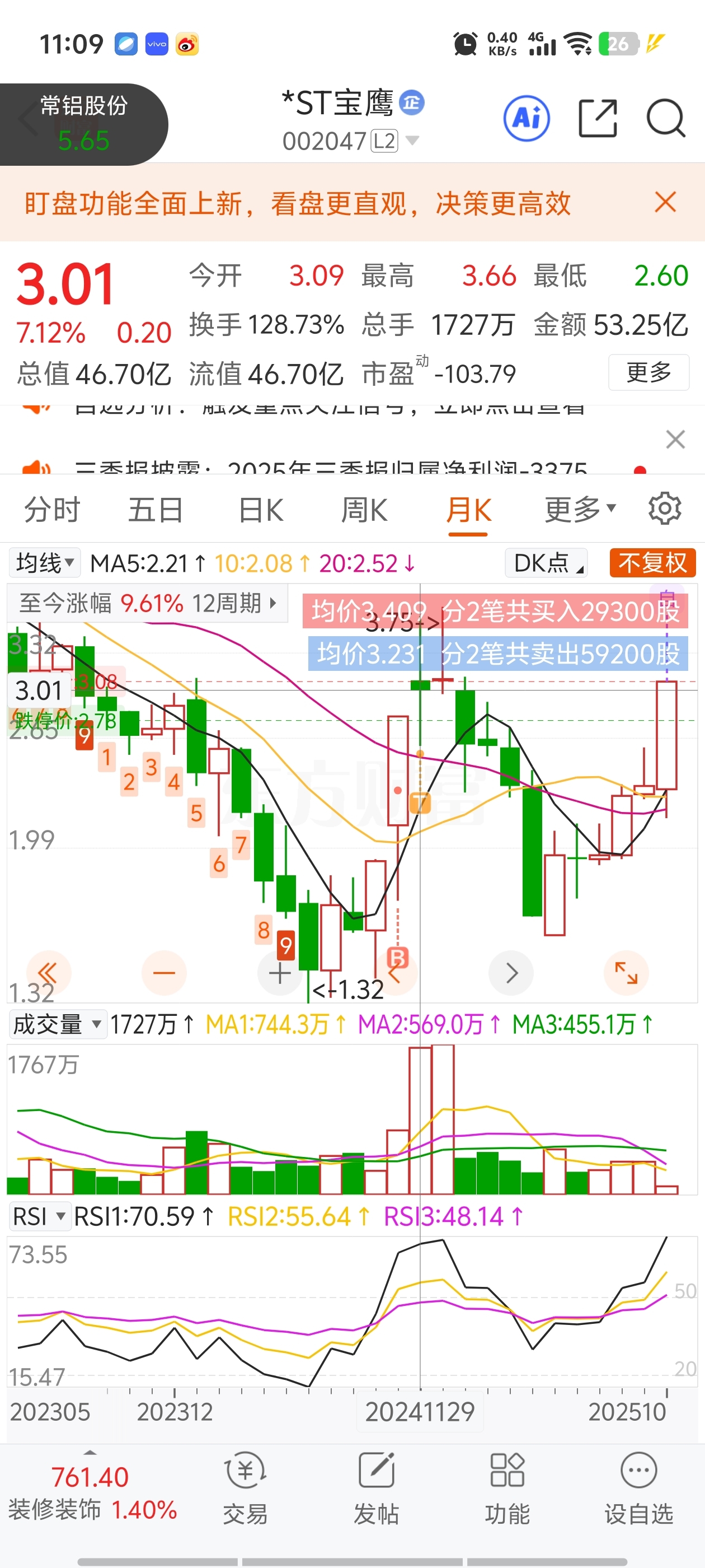 $*ST宝鹰(SZ002047)$ 早知道先不卖了,估计要涨到十块钱了