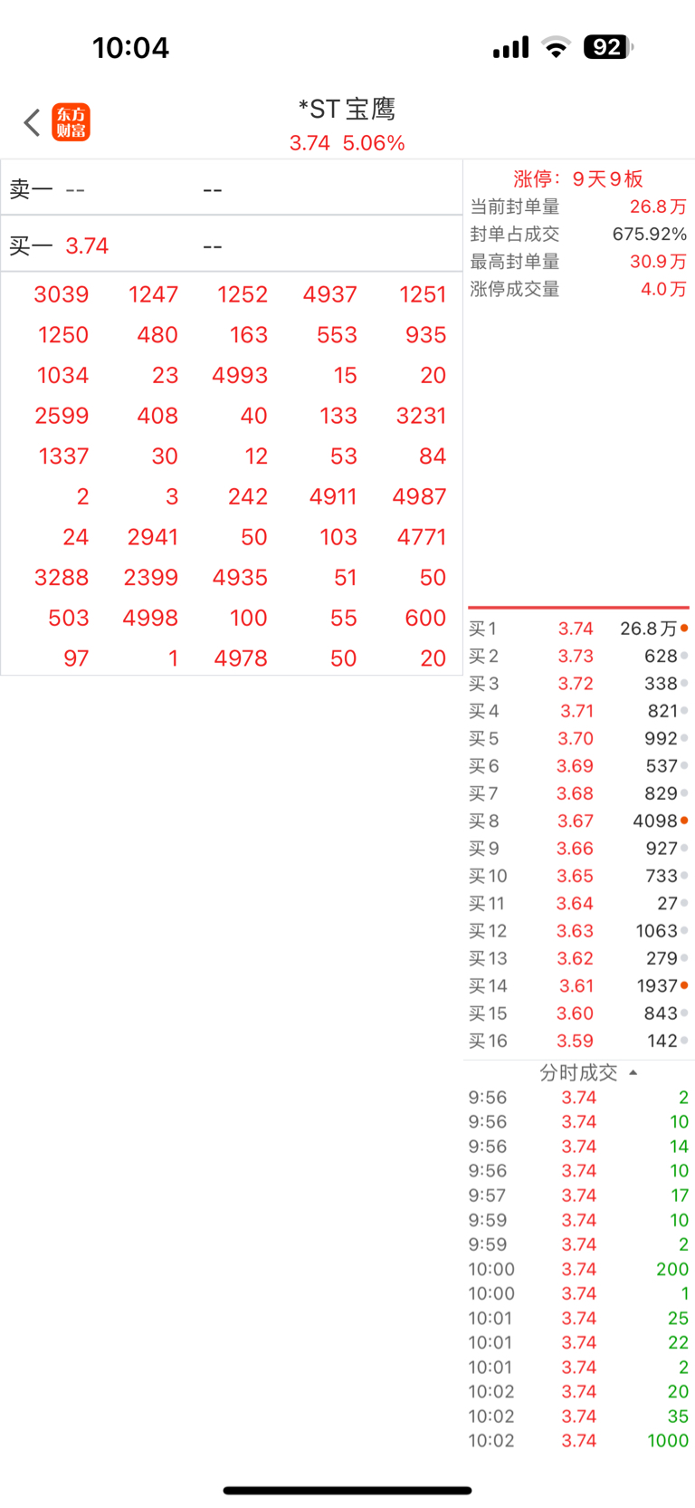 $*ST宝鹰(SZ002047)$ 前面的大单还都是机构的