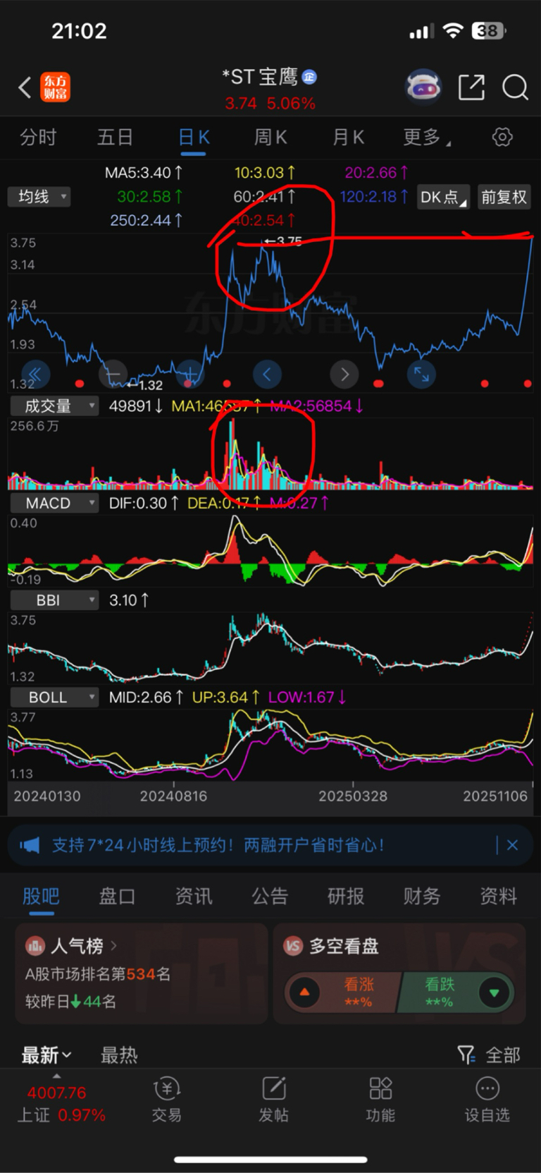 $*ST宝鹰(SZ002047)$ 自己领会。前期大量套牢盘附近了,只要撤单就是天地板
