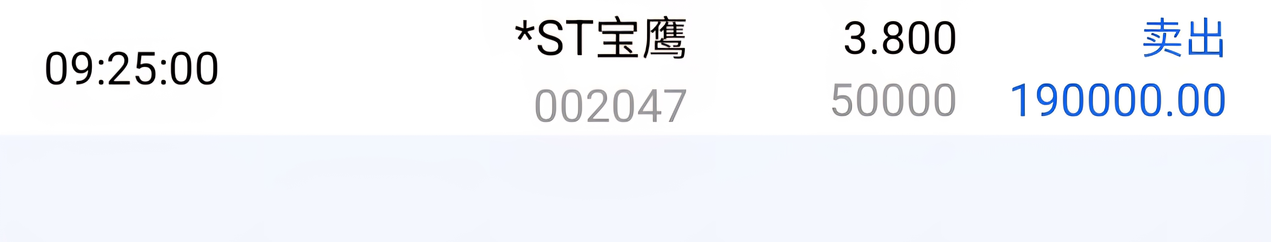 $*ST宝鹰(SZ002047)$ 感谢主力!