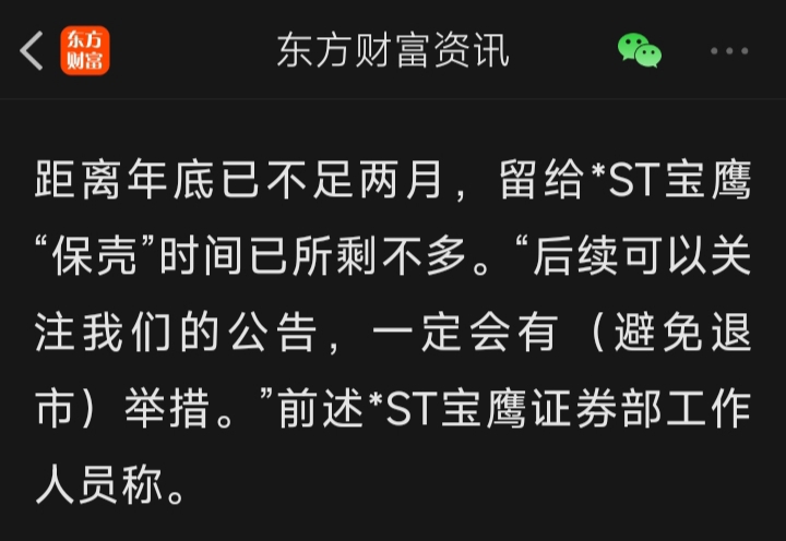 $*ST宝鹰(SZ002047)$ 打明牌了,近几周会有利好措施,保壳净资产转正只需要3000万而已,对于珠海国资来说一点难度都没有,再不济捐赠个3000万资产。