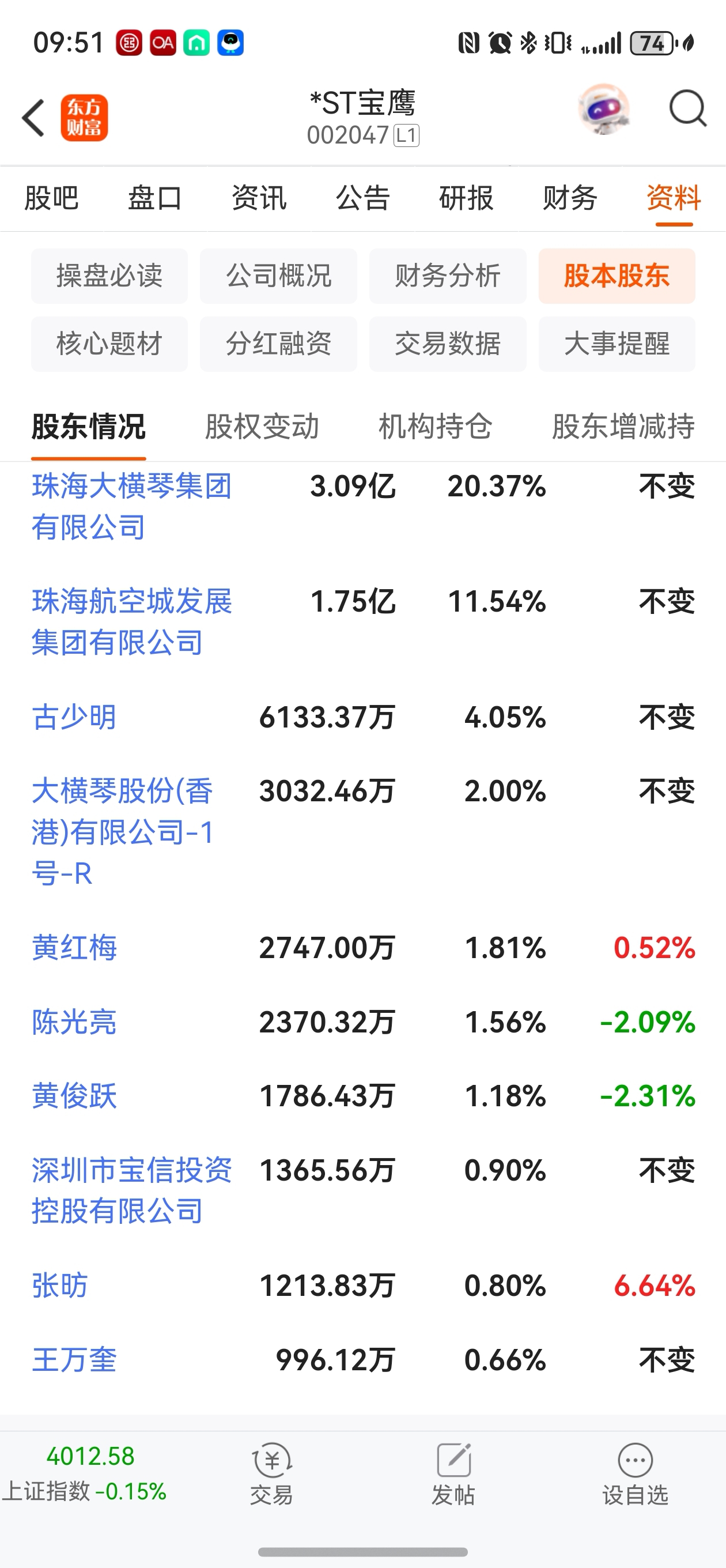$*ST宝鹰(SZ002047)$ 一把砸出一千万股的,应该就是这几个老六中的。