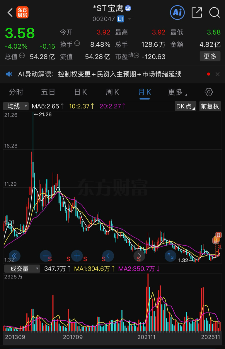 $*ST宝鹰(SZ002047)$ 咋一看还以为是多高的山顶,原来就这?一切交给时间吧