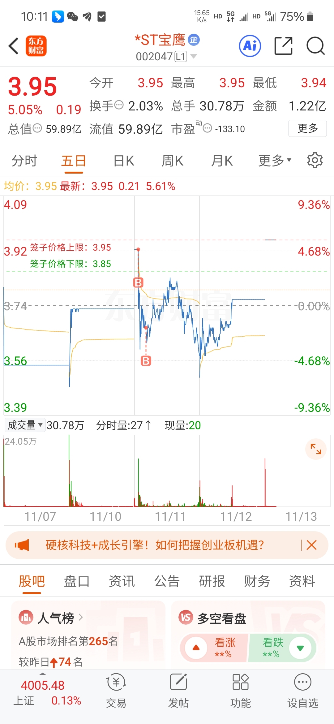 $*ST宝鹰(SZ002047)$ 有惊无险,我以为要把我埋了