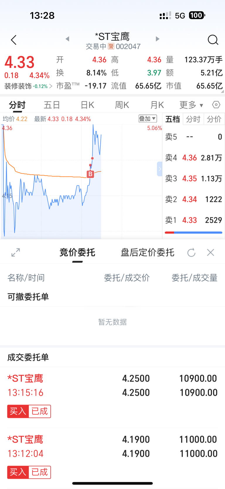 $*ST宝鹰(SZ002047)$ 全仓了。年前只做你了