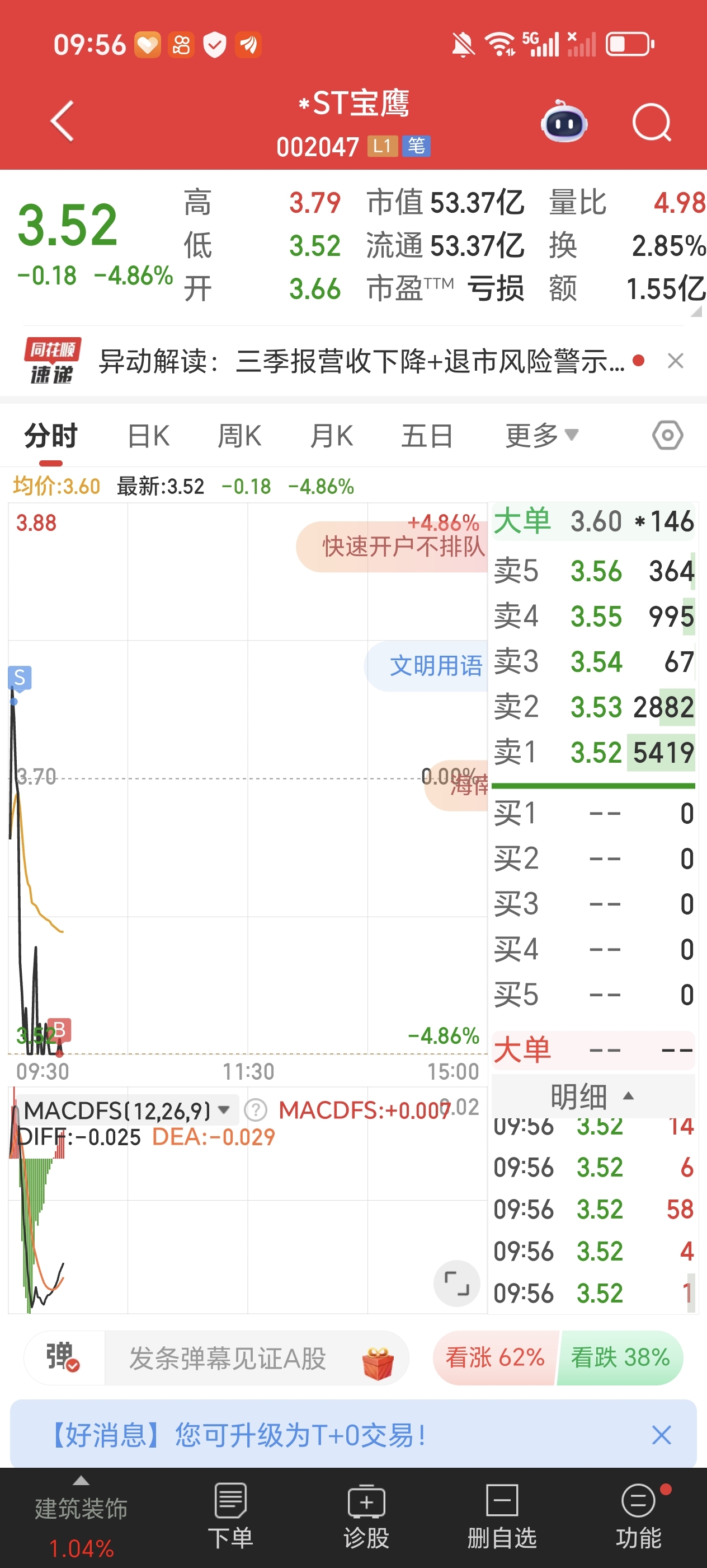 $*ST宝鹰(SZ002047)$ 下面骂我的,我也懒得说你们,手里几个钢蹦都拿不出互联网上藏龙卧虎,也有一群葱姜蒜,所以我不会去计较太多,毕竟现实中有些是送外卖的,有些是真开豪车的